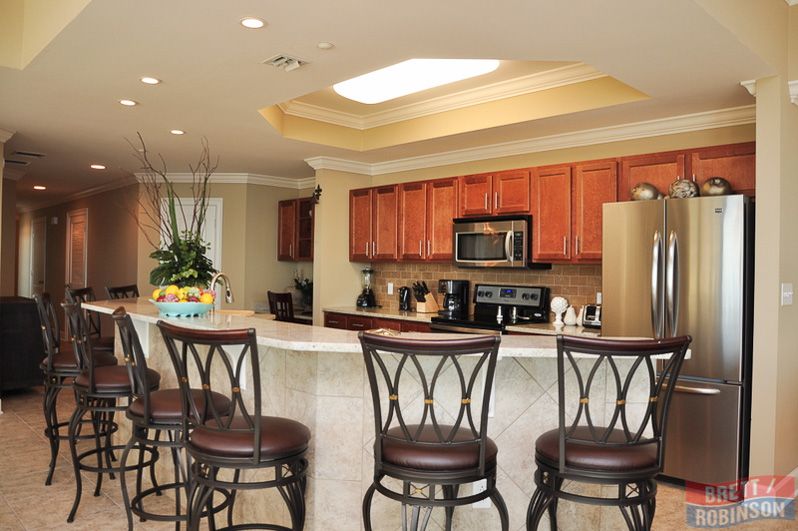 3 Kings size Beds, 1 Queen size and 1 Queen Sofa Sleeper. Each bedroom has its own private bath and balcony. Spacious kitchen with gourmet cookware and amenities. Separate wet bar with built-in ice maker. Dining room seating for 10; seating for 8 at island bar. Fitness center and spa one floor below. Free Jacuzzi, Sauna's, and the latest workout equipment available!! Indoor and Outdoor heated pools and, of course, the lazy river pool and slide! There is abundant indoor play space on each level for the kids and adults alike. Grilling areas on the ground floors! Have the time of your life! You NEVER have to leave the complex! Parking passes are $27.50 per week; 3 passes are allotted for our condo. You must pay upon check-in for these.