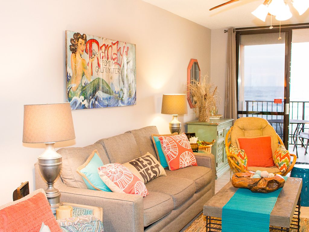 OWNER MANAGED. Great rates - less than realtors. We want your return rentals and your good word of mouth advertisement. You will have everything you need and more in our newly renovated 'Rest Nest'. If new and updated matters to you, you will love our Rest Nest. If beautiful beach views and balcony privacy matters to you, you will love our Rest Nest. If you are a "comparative shopper", you will love our Rest Nest. If you are picky about cleanliness and small details, you will love our Rest Nest. I am a new owner eager to rent to beach lovers! We put in new kitchen cabinets, granite countertops, new stainless appliances, new bath vanity.We have new living room furniture. Our new queen size sofa bed is complete with a comfy memory foam mattress. In addition we painted throughout and replaced bedding, towels, linens, décor and more. You will enjoy the laid back ambience in our spacious 1 bedroom condo facing beautiful Perdido Pass with gorgeous direct beachfront views. Relaxation starts each day as you watch the boats come out of Perdido Pass. The position of our condo offers more balcony privacy than most other 1 bedrooms in the building. Our condo is comfortable for 4 people. Our goal is to get the best advertisement possible - word of mouth! We do our part to make that happen. We are located in Central Orange Beach which is the best part of Orange Beach. Restaurants, shopping and Zeke's Landing Marina are all within walking distance. Diagonally behind us is Zeke's Landing where you can set up fishing trips, parasailing, paddleboard rental, dolphin cruises and more. Phoenix 7 is known for the many amenities such as tennis, racquetball, indoor & outdoor pools, hot tubs, fitness room, sauna, grilling areas. As a new owner, I was very impressed with how well maintained Phoenix 7 is compared to other complexes. Another big plus about Phoenix 7 is we have a low density beach on our end of shoreline. This means more beach space during those most popular times of the year. This end of the beach was widened 2 years ago. All this and our rates will be lower than the realtors. Why pay more for a rundown condo when you can enjoy newly redecorated for less $? The dolphin cruise boats are often in front of our beach because even the dolphins love it! We realize the value of vacation time. You will not be disappointed as you relax in our 'Rest Nest'. Don't forget your binoculars, the dolphins are out there!