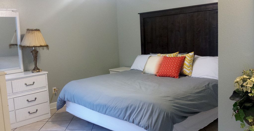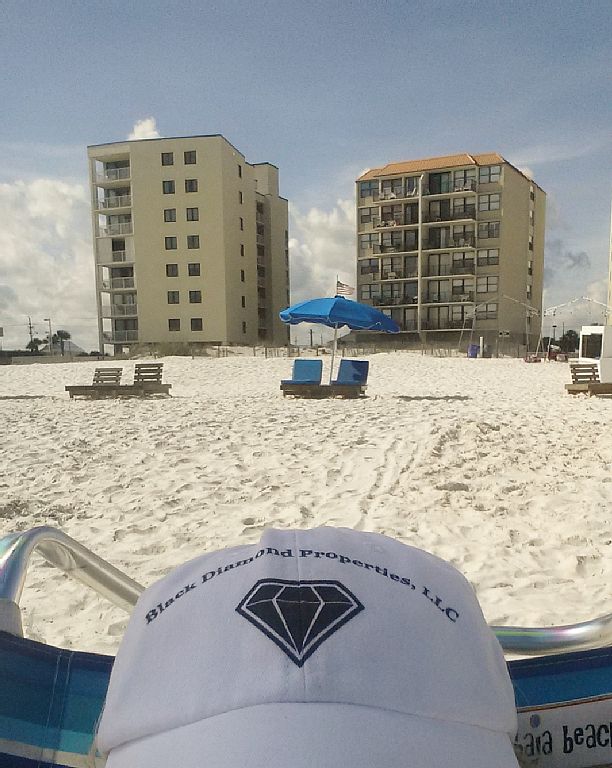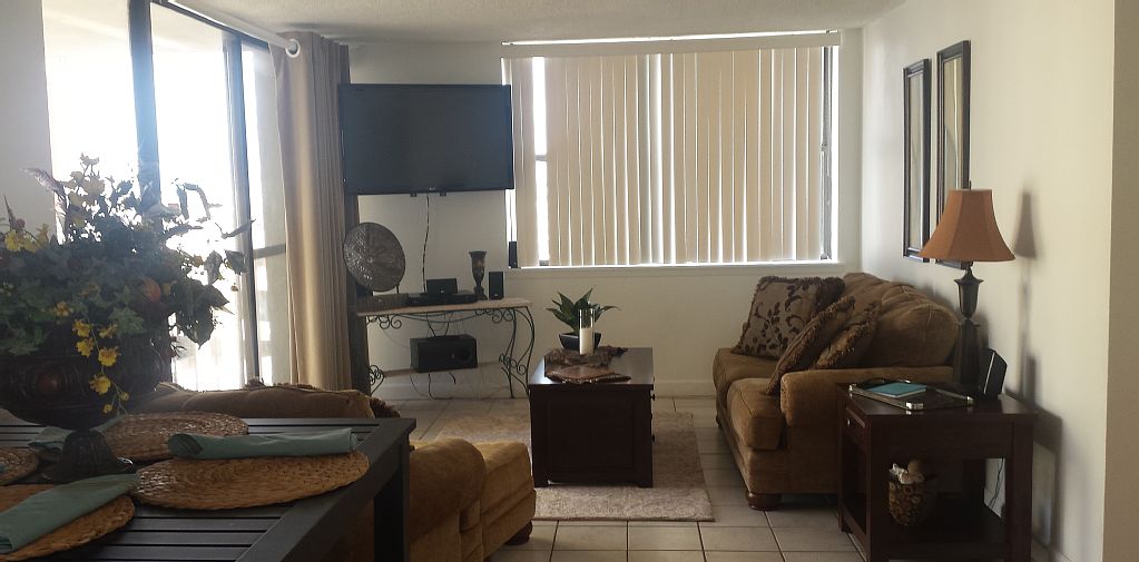 4th Floor, direct beachfront condo offers sleeping for 5 adults with King size Master Suite with private 3/4 bath (Shower, no tub), and additional bedroom with Queen + Twin beds. Main bath has separate toilet/bathtub area, making it easy to share. Property is direct ocean front, with a great view from the living room or balcony. Small, family-oriented complex includes outdoor pool, elevator, grills, and covered parking. Laundry is located adjacent to this unit. All tile floors & beautifully furnished, make this your next family getaway!