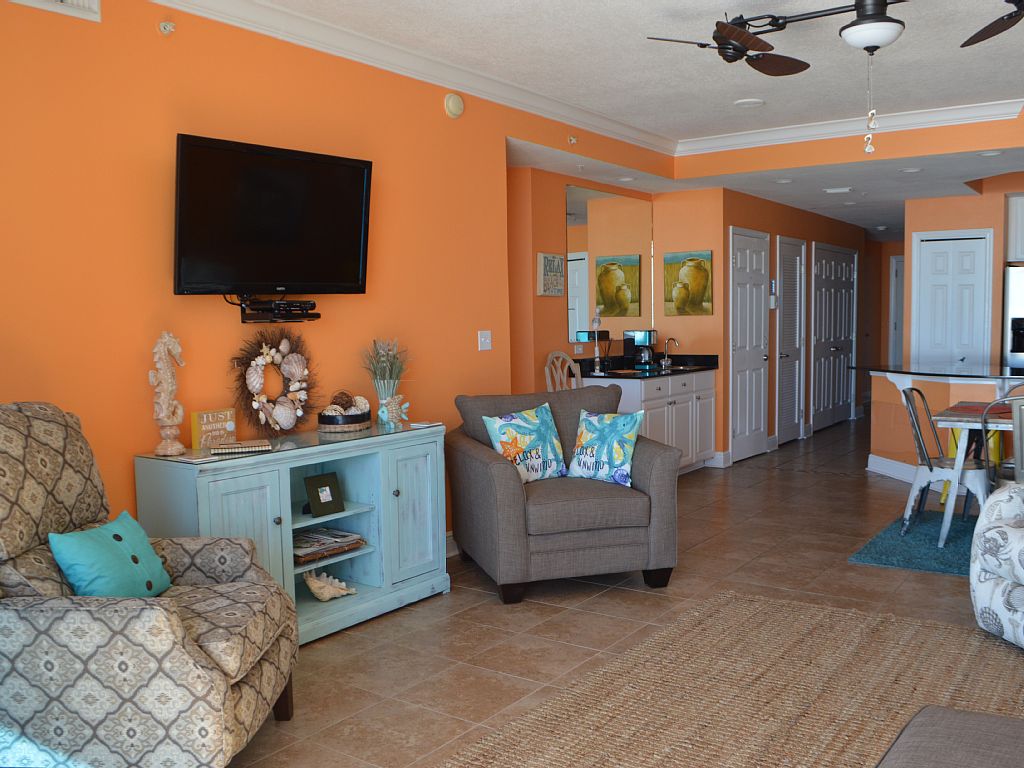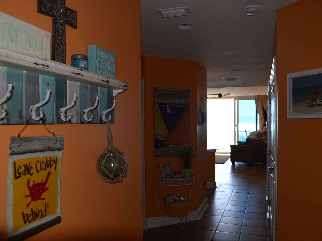 San Carlos 504 is one of the nicest condominium units in Gulf Shroes, AL. Your comfort and relaxation was foremost in mind when decorating this gorgeous home away from home. The complex is situated on the Gulf Shore Beaches just four-tenths of a mile east of Highway 59. It is located on sugar-white sandy beaches and turquoise waters. It is within walking distance to many restaurants including: Pink Pony Pub, Sea-N-Suds Restaurant, Waffle House, and the famous Hangout. Gulf Shores is a very family friendly town with all that you could want to do within a short walk or drive. San Carlos unit 504, is spacious and is beautifully decorated with all the comforts of home. Crown molding, granite counter tops, and tile floors are throughout the entire unit. The living room has a wet bar, 52 inch flat screen TV, and WiFi. There are wall-to-wall, floor-to-ceiling windows in our living room and master bedroom which allows for breath-taking Gulf views. Imagine watching the beautiful sun-rise from the comfort of your bed. The master bedroom has a 47 inch flat screen TV and the master bath has a Jacuzzi tub, as well as a walk-in shower with double sinks. When you arrive go directly to your condo for there is no hassle with checking in or checking out. There are buggies for your convenience to help with assisting you in transporting your luggage to and from your condo. Beach chairs and umbrellas are available for rent in front of San Carlos. Para-sail rides, banana boat rides, and wave runners can be purchased at a beach-side location adjacent to San Carlos. Dolphin tours are a convenient drive a way or you can watch the dolphins play from the comfort of your balcony. The streets of Gulf Shores have marked lanes for walkers/runner/cyclists plus there are trails nearby for access. There is 24 hour on-site security for your protection. Pack your bags and enjoy making memories at San Carlos 504!Are your preferred dates not avaiable? Do you need additional housing? If so, please inquire as we have mutiple units at San Carlos! More details