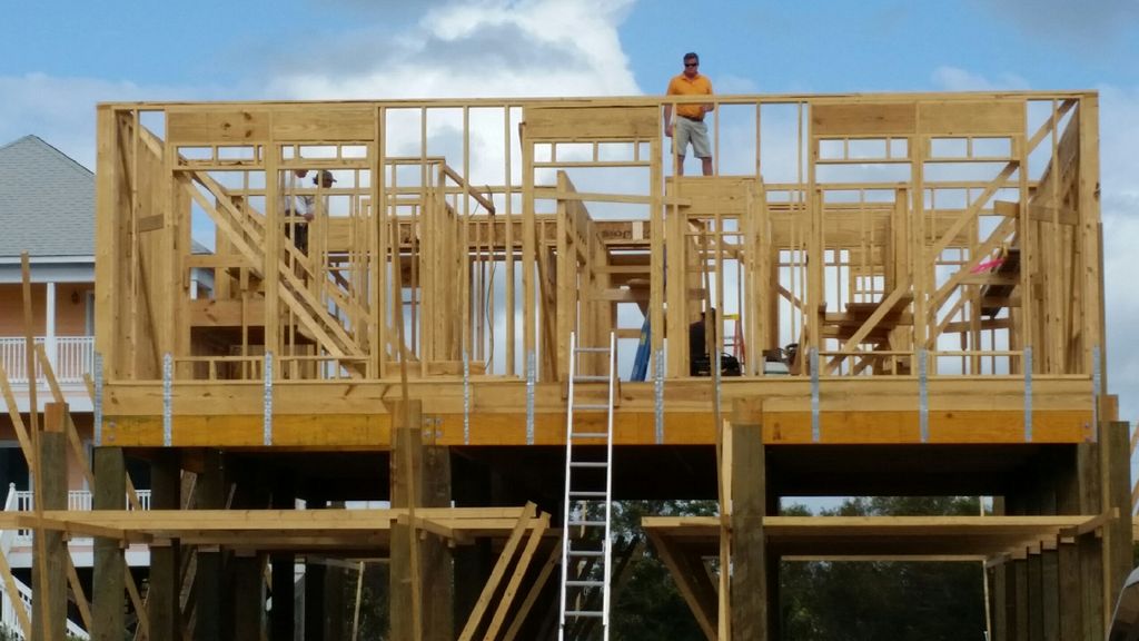 Brand new (completed) 4 bedroom/4.5 bath beach house on 1st Avenue in the heart of Gulf Shores. Easy walking to public beach access, restaurants, shopping, etc. Nicely acquitted with spacious living area. Covered porches, front and back. Each bedroom has its own television and private bath. Fully furnished kitchen with granite counter tops and all new appliances. Private pool for your exclusive use. Limited gulf view. Bring the family and enjoy all Gulf Shores has to offer.