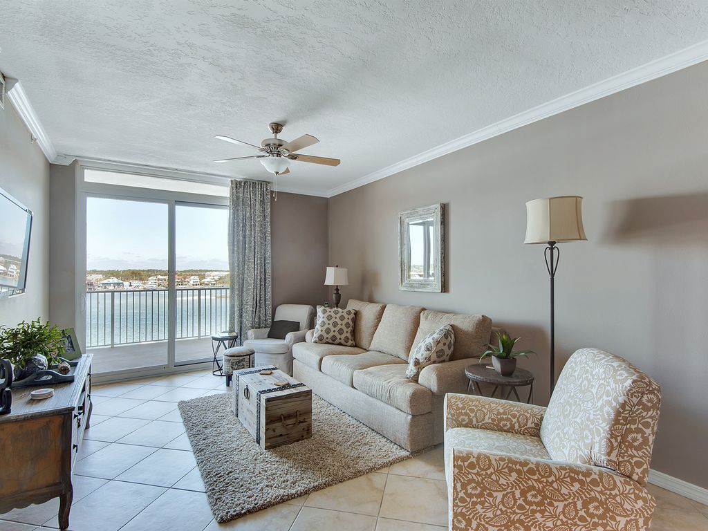 Relax, unwind and enjoy making memories in Orange Beach in our comfortable and cozy luxury condo. Watch the boats cruise by our bay front views and look for dolphins from the top floor balcony. Enjoy sugar white sands directly across the street and the pass to the Gulf of Mexico. The free state park beach is just over the bridge and you are there in just a minute and you will enjoy less crowds than the beaches behind the condos. There is a new HD flat panel tv mounted in the main room with many HD channels, a DVR, and a Blu-Ray DVD player. We are across the street from the beach. We find it to far to walk and suggest you drive less than 1/4 mile to the beach. Please know the HOA will only allow me to purchase one parking pass. You can buy a second pass for $35 for a first come parking space.BEDROOMS: HD flat panels are on each bedroom wall. Wii Fi is provided in the condo. The master bedroom has a king size bed complete with a jetted jacuzzi bath tub and separate walk in shower. The 2nd bedroom has a Queen Bed and the third bedroom has two twin beds. A second full bath has a shower/bath. KITCHEN: The kitchen has granite counter tops and all you will need to make your meals. There are the essentials including a blender, coffee maker, toaster, etc.LIVING AREA: The very spacious living and dining rooms are newly decorated and appointed with cozy furnishings. The bistro height table with six chairs is perfect for playing family games and two more seats are at the kitchen bar. You can wash beach towels and other laundry right in the unit with the washer and dryer. The very large balcony is great for outdoor living with great views of the pool area, the Marina, and the tranquil boat traffic in the no wake zone. LOCATION: San Roc Cay is next door - walk over and enjoy shopping, water sport activities, fishing charters, and restaurants like Grazie's, Shrimp Shack, Shrimp Steamer, or Louisiana Lagniappe. The back country bike trail is just down the road. The Orange Beach sportsplex that hosts many baseball tournaments is 5 miles away as is the Orange Beach tennis facility and aquacenter. The famous 'Flora-Bama' lounge is 3 miles down the road. Cobalt restaurant is just the other side of the pass less than a 1/2 mile. Tacky Jacks restaurant is seen from the balcony just across the water. The the shrimp basket restaurant are less than a mile away. The 'wharf' with an amphitheater , Ferris wheel, movie theater and several restaurants and bars is about five miles away. We do not advertise on craigslist.We are across the street from the beach but it is too far to walk and you would need to drive 1/4 mile to the state park entrance. Imagine yourself with a cold drink watching the boats idle by and spot the playful dolphins! More details