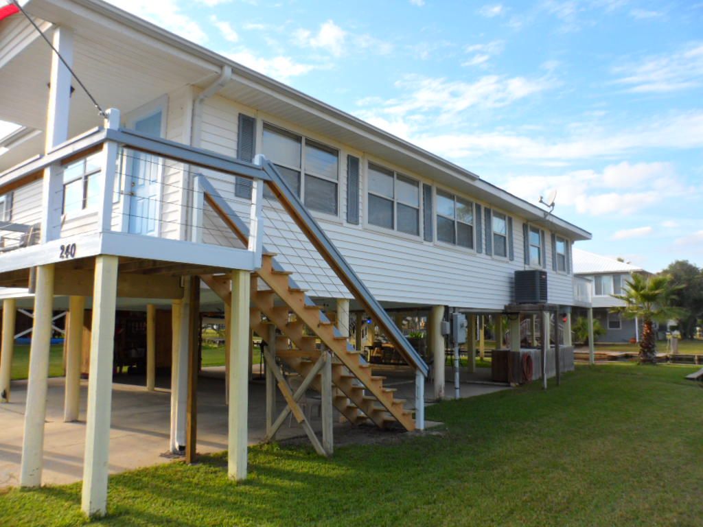4 bedroom 3 bath home with full kitchen which includes Stove, Fridge, Coffee Maker, Microwave, Small Toaster Oven, Completely Furnished. Downstairs grill, sitting area, boat launch for small boats. Nice yard to play in and close to lots of local favirotes. A short walk to the beachs, The Hangout, Pink Pony Club and great shopping