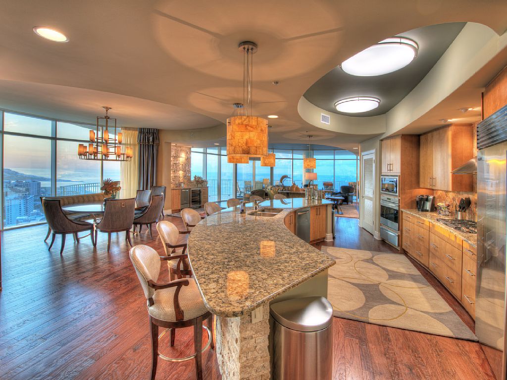 PAYMENT OPTIONS AVAILABLE WITH NO SERVICE FEES!Our upscale 4 bedroom, 4.5 bathroom condo is a corner unit on the East end offering incredible unobstructed panoramic views of The Gulf of Mexico, Wolfe Bay, Ono Island, Perdido Key and the Intracoastal Waterway. All 4 bedrooms offer balcony access, and literally every room in the house has an amazing view of the water from the floor to ceiling windows.This spacious 26th floor condo is truly one of a kind and includes many upgrades such as hardwood flooring throughout all living areas and bedrooms, travertine tile in all bathrooms, a custom lighted stone faced kitchen island and wet bar, as-well-as a stone faced gas fireplace in the living room. It is lavishly furnished inside and out with high-end, custom ordered furniture for your added comfort. Our condo was furnished with the distinguished traveler in mind and will not disappoint. The kitchen is equipped with Subzero/Wolf appliances, gas cook top, double ovens, microwave, warming drawer, full size dishwasher and 2 dishwasher drawers. The wet bar includes a wine cooler and ice maker for your entertaining needs. There are flat screen televisions in each bedroom, master bath and living room, along with blue tooth sound bars in the bedrooms. The wrap around balcony is equipped with a built-in gas grill and kitchen area, a private hot tub and plush furniture for your relaxation. The Master Suite features a king bed, sitting area with a chair large enough for 2, desk and flat screen TV. The luxurious master bath includes an oversized jetted tub, a multi-sprayer walk-in shower, a flat screen TV and a large walk-in closet. Bedroom 2 offers a king bed, chaise lounger, flat screen TV and private bath with walk-in shower and closet. Bedroom 3 also has a king bed, sitting area, flat screen TV and private bath with walk-in shower and closet. Bedroom 4 is equipped with 2 custom made full size beds, a twin sleeper chair, flat screen TV and private bath with tub/shower combination and walk-in closet. Did I mention the incredible views and balcony access from all of the bedrooms and living areas?Turquoise Place offers a lazy river, indoor and outdoor saltwater pools, tennis courts, hot tubs, sauna and steam rooms, fitness center and a children's playground area. More details