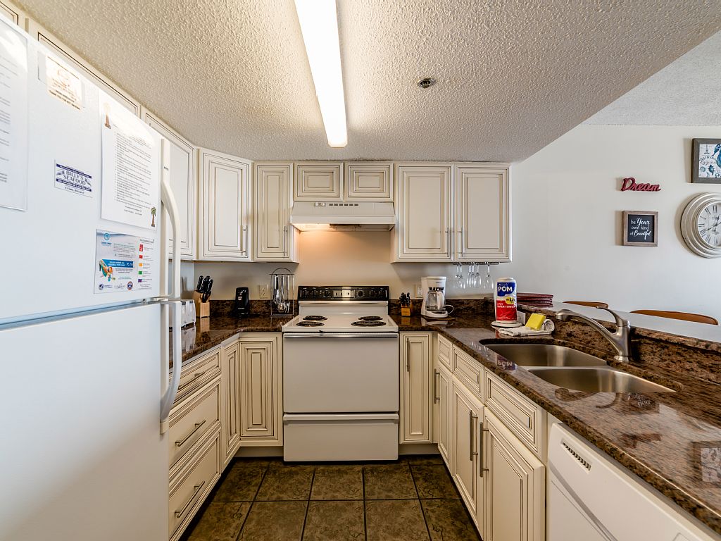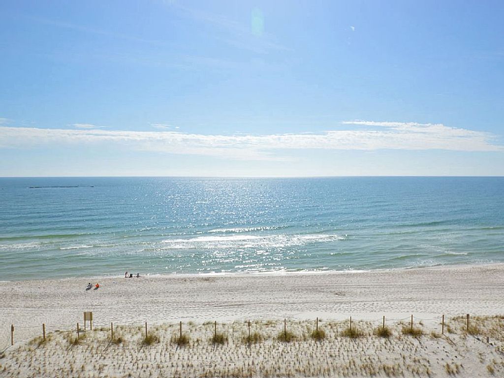 From our private, covered, 5th floor balcony, you can enjoy the wonderful view of the Gulf, watch the numerous shore birds, search for dolphins, or just listen to the waves lapping upon the shore. This Two Bedroom Condominium has ~ Two Baths ~ Master Bedroom containing a King Sized Bed ~ Guest Bedroom containing a Queen Sized Bed ~ Sleeper Sofa ~ Three Televisions ~ VCR and 2 DVD Players~ Wireless Internet ~ Washer and Dryer ~ Private Balcony with an Amazing View ~ Outdoor Pool ~ Exercise Room ~ Barbeque Grills ~ Please, No Smoking - No Pets ~ Elevator ~ Beachfront Location ~This condo is in a smaller complex located just one mile from the heart of Gulf Shores where you will find numerous restaurants and shops. The beachside pool has a large sundeck with lounge chairs and a covered picnic area with grills, a fitness center, and ground floor rest rooms. We also have a new Boardwalk to the Beach. The kitchen is equipped if you like to eat in, and there is a washer/dryer in the unit for your convenience. Bed and bath linens are provided. Great for Family Vacations ! : Besides swimming, surfing, skim boarding, playing ball and Frisbee, collecting shells, and building sand castles on the beach, there are many other activities in the area to be enjoyed by children. Places to visit and things to do include the zoo, water and amusement parks, go-kart tracks, numerous putt-putt golf courses, dolphin cruises, and parasailing. There are also forts to visit, bike trails to ride, and bird sanctuaries, wildlife refuges, and estuaries to explore. Of course there is always fishing and finding those little sand crabs after dark.Bringing all of the family....We have a 3 bedroom, 3 bath unit next door. Rent them both! - See VRBO/932224. More details