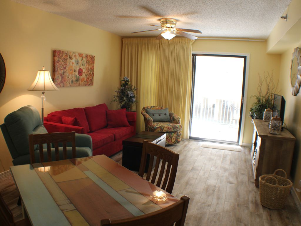 Renovated just in time for you! Condo has new tile floors throughout the unit. The master bathroom has a brand new tile shower and the second bath has a new tub and tile surround. New furnishings are the finishing touch for this great condo! Conveniently located on FIRST FLOOR just above pool. HEATED INDOOR/OUTDOOR SWIM-THROUGH POOL & HOTTUB, BEACHSIDE BBQ AREA- only steps to the beach. Harbour Place was built in 1997 and is a low density complex with only 65 units sharing a large beach area, so you never have to fight for your spot on the beach. Harbour Place has quiet, secure indoor hallways. The area is quiet and family oriented.It has both covered and uncovered parking. There is also a shaded deck with a BEACHSIDE BBQ GRILLING AREA adjacent to the pool which is perfect for your barbecue or picnic. The unit features a fully equipped kitchen and a washer/dryer inside the unit. The dining area seats four and there are two additional bar stools.The master bedroom has a king size bed and the adjoining master bath has a walk-in shower. The second bedroom features a twin over full bunk and the second bathroom has a tub with shower. The living area also contains a sleeper sofa for additional sleeping accommodations. This smoke-free condo sleeps 4-6 comfortably. Step out on to the large balcony which is accessible from the living area. It overlooks the gulf and beach with fabulous relaxing views. Listen to the waves as you dine outdoors, enjoy a cup of coffee, read a book, or just relax and take in the view!Additionally, our vacation home has wireless internet and cable television. All linens are provided with the exception of beach towels. There is a covered entry, and luggage carts are available to assist in loading and unloading your vehicle. On site parking is available and a parking pass is required. This is a NON-SMOKING unit and NO PETS are allowed. A private boardwalk invites you out to the beautiful sugar white sand beaches where padded chaise lounges and umbrella rental are available (in season).Located in Orange Beach, we are surrounded by grocery stores, restaurants, local shopping boutiques. Water activities with dolphin watching and zip-lining are just minutes away. Fun activities for the entire family. More details