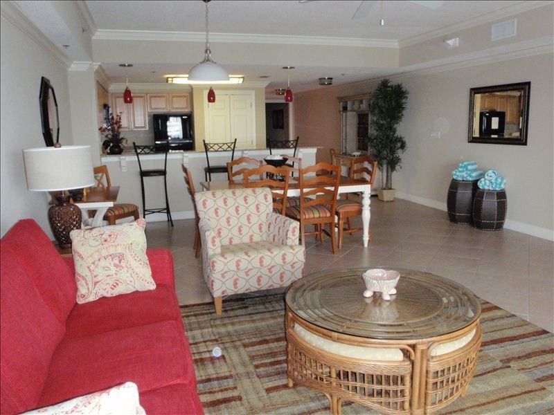 So what does 2 living spaces in 1 mean? It's the answer to getting the whole family together at the beach and still having some private space. This unit has two separate living spaces that share an entry foyer and laundry area. Once you enter from the interior common hallway into the foyer, you can enter one side that has a master bedroom, full bath, kitchenette and living room with a Murphy bed (4th bedroom/true, queen size mattress). When you return to the foyer the other entry has 2 large bedrooms, 2 full baths, a full kitchen, and a huge living/dining area. This set up is perfect for In-laws, Snowbirds, another family, grown children or whoever else you want to bring along. Once everyone settles into their own space, you may want to meander on down to the beach with your beach towels provided from the condo. Plan on soaking in the wonderful luxury of Escapes! to the Shores. An activities schedule is available at the front desk for young and old to enjoy or you can simply take it all in on your own. On your way to the beach you will see the three pools, hot tub, sauna, steam room, workout room, outdoor fireplace, grills, water shooting from the pool deck and much much more. By the time your toes touch the sand you realize this place has it all. There are so many choices of what to do during your stay in Orange Beach it's hard to pick just a few. Grab a boogie board, look for shells, stroll down the beach, play some volleyball, or just sit and watch the sun go down on the beach. We also enjoy riding bikes (rented and delivered) or hiking on the trails at the county park. After burning a few calories on any of the vacation activities, we are always looking forward to the fine dining available in the area. In particular, we enjoy Franko's and Lagniappe. Let's not forget the shopping! There are plenty of deals at the outlet mall just up the road We hope you will enjoy our serene spot of paradise and discover your own vacation pleasures! NOTE TO SNOWBIRDS:Perfect for 2 couples or company coming to visit, each having their own private space (in-law suite has fully stocked kitchenette).This condo is a perfect set up for snowbirds! Just picture it...you're on the beach for the winter and when family comes down to visit they have their own suite to stay in, separate, but together. There is covered parking, interior hallways (temperature controlled) to room, excellent security, on-site management and too many amenities to list. Give me a call and I will fix you up with a Snowbird Nest you will want to return to year after year!Keywords: Escapes! to the Shores, New, Luxury, Orange Beach, In-law suite attached, heated indoor pool, zero-entry pool, Beach Front, Gulf Front, Upscale, 4 Bedroom, 3 Bath More details