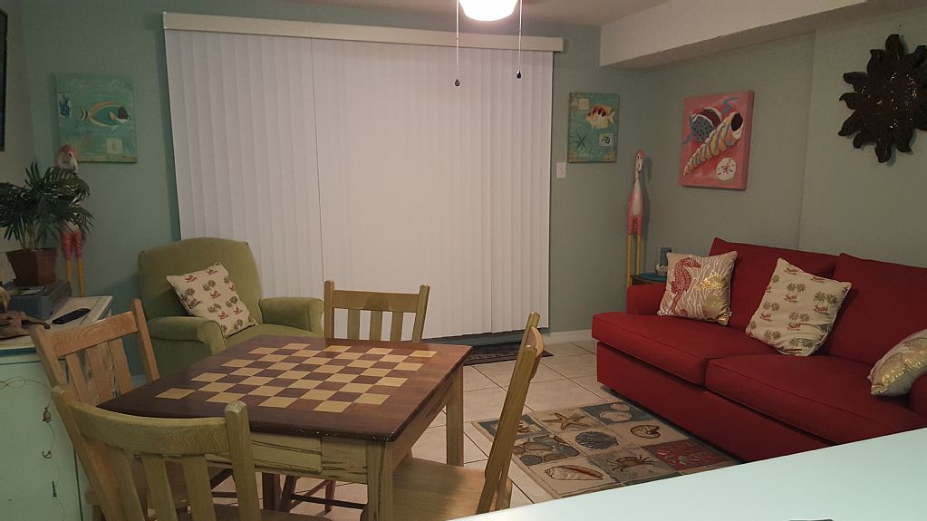 Gulf Front with A Direct Gulf View. Breathtaking Sunrise & Sunsets from the 3rd floor private balcony. New King Size master bed, New Queen size sleeper sofa in living area. Twin Bunk beds in hallway. Two full bathrooms. And a fully equipped kitchen. Watch the dolphins play as you take your morning stroll to the Alabama State Pier. If you had rather start your morning fishing off of the pier you are there within mere minutes.Royal Palms is minutes away from all of your favorite restaurants & favorite Gulf Shores attractions.With the state beach to the left and a vacant lot to the right you feel as if you are on your own island. Don't fight the crowds come join us for an amazing vacation.