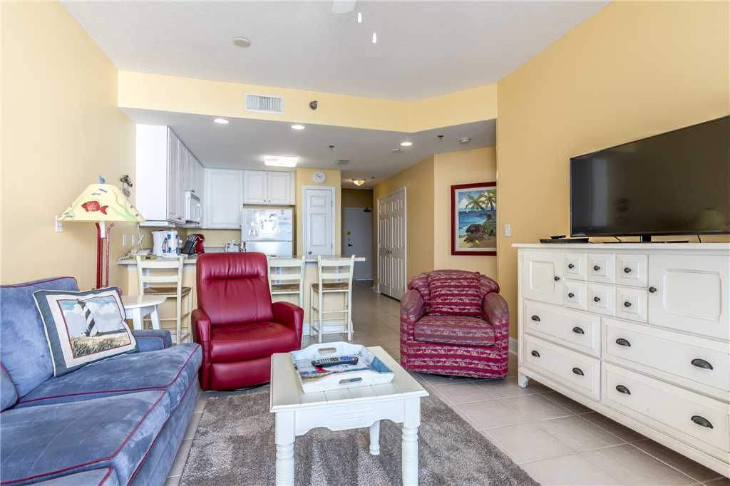 Your family will love this 6th floor gulf front unit. It is located in the center of the building with great views of the beach and pools. The Lighthouse has covered parking and the area from the elevator to the unit door is fully enclosed.The master bedroom suite opens to the large balcony. It includes a king size bed, dresser, two nightstands, and a 24inch flat screen HD TV. The private bath has a Jacuzzi tub and separate walk-in shower. There is, also, a dressing area outside the large walk-in closet.The kids will love the bunk room that includes a double lower bunk and twin upper bunk, a three-drawer chest, a 19inch TV with DVD and VCR, and a door that closes for privacy. There is a second full bath with walk-in shower directly across from the bunk room.The laundry room has a full size washer and dryer.The unit has a pantry in the fully quipped kitchen including an ice maker in the refrigerator blender, 12 cup coffee maker, and a slow cooker. The living room has a sleeper sofa, a recliner, two chairs, a 42 inch Smart HD TV and Blue Ray player.The large covered balcony overlooking the pool has a table and chairs for dinning and two lounge chairs. This unit has free wireless internet and tile throughout. The Lighthouse is located ½ miles east of HWY 59 and the Hangout and ½ mile west of the State Park and Pier. The Lighthouse features two outdoors pools (one is zero-entry with fountains), two outdoor hot tubs, and indoor heated salt water pool, a fitness center, sauna, an outdoor grilling area, four elevators and of course the Beach. Also, on the ground floor there is an air compressor, ice for purchase, storage and snack and drink vending machines. There are designated smoking areas on the grounds. The Lighthouse does not allow smoking at the pool, or any of the common areas. No smoking in the condo or on the balcony. This property has paid parking. You can purchase up to two parking passes.The Lighthouse Condominium Association strictly enforces their policy of not allowing anyone under the age of 25 to rent. Pets are not allowed on the property. More details