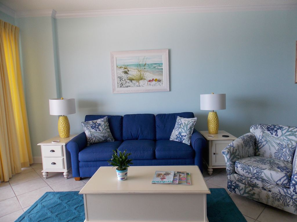 Come, relax and enjoy!!! Our spacious 1250 Sq Ft unit is located on the 2nd floor with awesome views of both the Gulf of Mexico and Perdido Pass. Watch boats coming and going through the Pass from the large private balcony accessible from the master bedroom and living area. Master bedroom has king size bed, master bath( 2) sinks, step-in-shower, jacuzzi, walk-in and linen closets. Guest room (2) twin beds, bath with tub/shower combo and (1) sink. Wet bar with free standing ice maker, (3) TV, (2) DVD, satellite cable, and WIRELESS INTERNET. Outside/inside pools, outside/inside hot tubs, exercise room with sauna and steam rooms. Outside grilling area gazebo with gas grills, tables and chairs.Private gated community with keypad entrance to premises. Ground parking and limited cover parking. San Roc Cay is conveniently located across the street with dining, shopping attractions, recreation and nightlife!!! Check out The Gulf restaraunt at Perdido Pass bridge, great sandwiches!! Airport: Pensacola, FL - approx 30 minutes to Orange Beach. LIFE IS GOOD IN ORANGE BEACH!!! Keywords: Condo, 2 Bedroom, 2 Baths, Sleeps 4 - 5, Gulf front with large beach area. More details