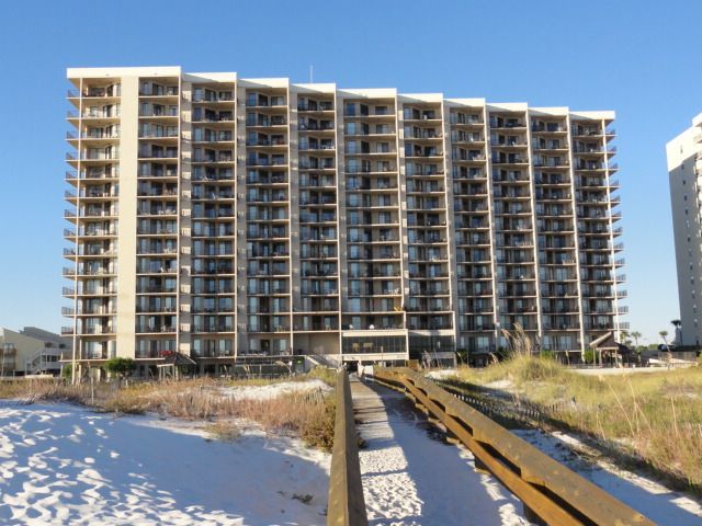 Beachfront Condo with spectacular views of The Gulf of Mexico and Perdido Pass. Pleasantly furnished and decorated with a tropical feel, this 2 BR, 2 Bath, 3rd floor condo will help create lasting memories. Relax on your own private balcony while watching the fishing boats sail thru Perdido Pass or the dolphins swim in the gulf. This condo has all the amenities you need to enjoy your beach vacation including a 40” flat screen TV with DVD player and stereo system. The living area has plenty of room, high ceilings, and comfortable furnishings so you can relax. Your kitchen is fully equipped with everything you need, even a few items you may not have at home. Enjoying your food and beverages outdoors is a vacation tradition. On the patio you will find a table with four chairs, a lounge, and additional seating. Inside, the dining area has four chairs and dining table along with two bar stools at the bar. Both bedrooms have private bathrooms with a sink, vanity counters, and bath/shower combo. In the master bedroom suite is a king-sized bed, a 42” flat screen TV, and access to the balcony. Your guest bedroom has two queen beds and a 37” flat screen TV as well. All linens are provided, and no need to bring your entire wardrobe – full size washer and dryer included in the unit. Minimum three night stay required. A $110.00 cleaning fee will be added to each rental. Taxes are included in the rental rates. We add a 3% charge for credit card charges. We accept Visa and Mastercard. More details