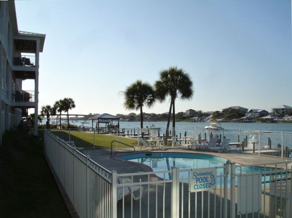 This river front unit is a top floor (3rd) end unit in a low density building (27 units in all). It has gated parking lot and a private waterfront overlooking the Ole River and Ono Island. Dolphin Harbor has beach rights in which guests can use the pool and amenities across the street. Dolphin Harbor has boat docks for guests to use during their stay. Great views from the balcony where you can watch dolphins swimming in the river. Access to the Gulf is one mile away from the dock. While cruising the back bay you can watch dolphins which will actually follow your water craft. You can also rent boats or wave runners a short distance from Dolphin Harbor. Dolphin Harbor is 8/10 of a mile west of the FloraBama , a world famous beach bar enjoyed by visitors of all ages.The complex is a short drive to the Pensacola Air Station Museum. There are many opportunities to golf in the area as well.Keywords: Condo with boat slip availability, tennis court, Beach Access