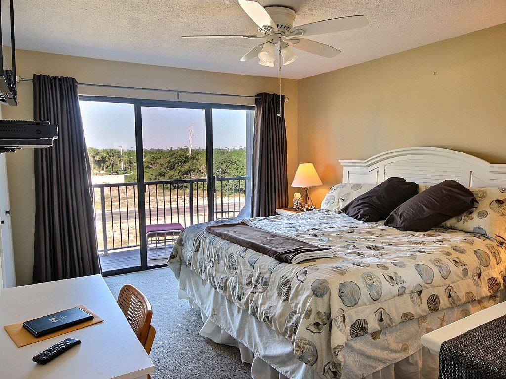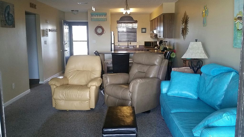 Whether you prefer to enjoy a cup of coffee on our large balcony, or have a little fun in the sun on the beach, come enjoy the true meaning of 'home away from home' at our relaxing beach side condo! This beautifully decorated 2 bedroom 2 bath unit in Orange Beach at Seaside Beach and Racquet Club unit 1309 is updated and fully furnished. Our condo is 960 square feet! The kitchen is equipped with all major appliances along with utensils, pots and pans, blender, coffee maker, toaster, and microwave. We also have an iron and iron board. The kitchen also has dining for six.Condominium includes 3 flat screen TVs with cable and DVD players. We also have two digital alarm clocks with USB ports in each bedroom for your convenience!Both of our bedrooms have a lot of storage space!! Master bedroom has a king sized bed with balcony access. We have an end table with 2 drawers on each a side of the bed. There is also a dresser with 6 drawers and a mirror in the master. And for your convenience we also have a desk with 2 drawers for our guests to be able to manage bills from, or set up their computers at. The second bedroom has a queen sized bed with a smaller end table on each a side of the bed. There is also a dresser with 3 long drawers and another end table with 1 drawer. The living room has a queen sized sleeper sofa, 2 rocker recliners, and a swivel chair. Both bedrooms and the living room also have ceiling fans along with carpet. The bathrooms have tile flooring. We have also installed blow dryers on the walls in each bathroom so that our guest won't have to bring their own. For your convenience, our unit has a stackable washer and dryer, so you won't have to do laundry when you arrive back at home! Our large balcony is covered and we have a side view of the beach. We do have a table with 4 chairs, 2 other chairs and a double glider on our balcony, so you can sit outside and enjoy the breeze. When you step out our front door you are just steps away from the club house and 2 lighted tennis courts. The indoor saltwater heated pool, steam room, sauna, and fitness room are also located in the club house. On your short walk to the beach, you will come across the barbecue pits, shuffle board, and the 2 outdoor pools. For your convenience, 2 luggage carts are located under the stairs right next to the elevators. Please remember to put them back for the next guest to use. Thank you.We also have free WiFi available to our guest in the unit! We are located in a gated community with a guard on duty. Below is a list of the great places surrounding Seaside Beach and Racquet Club:Flora - Bama - 5.5 milesThe Hangout - 5 milesWaterville - 5.5 miles The Track - 7.5 milesTacky Jacks Grill & Tavern - 3.4 milesRotolo's Pizzeria - 1.2 milesWintzells Oyster House - .6 milesLive Bait Food & Spirit - .4 MilesBubba's Seafood House - across the streetWaffle House - .6 milesFranco Italian - .9 miles Adventure Island - across the streetFat Daddy's Arcade - across the streetWal-Mart - .9 milesPublix Super Market- 1.4 milesCVS - 1.1 milesSouvenir City - two doors downAlvin's Island Department Store - .4 MilesFoley's Gulf Course - 12.3 milesTanger Outlet - 14 milesCracker Barrel, Lowes, Home Depot, Lamberts - 13.3 milesCheck in is at 3pm and check out is at 10am. You must be 23 years old to rent the unit. There is a $20.00 parking fee per vehicle per stay with a maximum of 2 vehicles to be paid to the guardman on duty.Call, email or text to find out about our weekly discounts 337-962-2386 or 337-319-4240!!!!!This unit is smoke free and pet free! More details