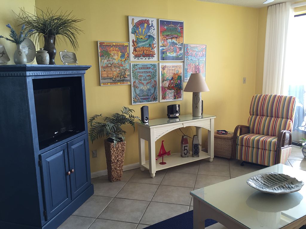 Summer House is located on the wide, white sandy beaches of Orange Beach, Alabama.Book directly with the owner.Come visit our beautiful Nautical Beach Front Condo overlooking the beautiful Gulf of Mexico. The minute you walk through the door , you will be Inspired by the view of the Blue-Green Waters of the Gulf of Mexico and the Sugar White Sandy Beaches. This is a 3 bedroom; 2 bath condo with 1,300 sq.feet. Our Condo is decorated in a Nautical design. Both living room and Master Bedroom have sliding glass doors opening onto the large balcony with unobstructed views of the Gulf of Mexico and White Beach. The Balcony is furnished with a table and 6 chairs, and two lounge chairs, for enjoying your morning coffee and afternoon cocktails while you enjoy the gorgeous view. The Living Room is furnished with a Queen Sleeper Sofa, High Definition LCD flat Screen TV, DVD,VCR, and Stereo. The Dining room has seating for six, with adjoining kitchen counter with two bar stools. There is a laundry area off kitchen with a full size washer, dryer, ironing board and iron. The Master Bedroom is furnished with a comfortable King Size Bed, HD TV, DVD. The sliding glass door opens onto the spacious beach front balcony where you can wake to the sound of Waves on the Shoreline. There is a large closet. Master bathroom with a new glass enclosed walk in shower. One Guest Bedroom is furnished Nautical with twin beds. Has a TV and DVD Player. A large closet with a small paperback library.The other Guest Room has a Queen Size Bed, large mirrored closet. It also has a TV and DVD. Guest Bathroom in hall with Guest Bedrooms. It has Tub and shower combined. All bed linens and towels are provided. Just bring your beach towels . Also bring binoculars so you can enjoy watching the dolphins from our balcony. More details
