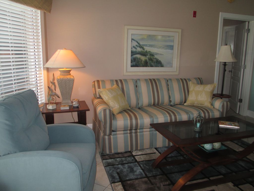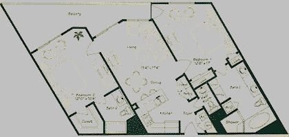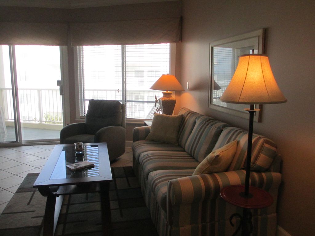 Palm Beach is a mystical resort recapturing a timeless Mediterranean paradise. Ideally located in Orange Beach, Alabama, Palm Beach makes the outside world seem remotely distant. This vacation resort is conveniently located to major airports in Pensacola, Florida and Mobile, Alabama.The tropical gardens and white sand dunes provide the familiarity of a deserted isle, but when you venture outside your residence, you'll find the entertainment, recreation, shopping and dining exceptional - all with that old fashion, warm, Southern hospitality.One will never lack for activity at Palm Beach. Whether you prefer losing yourself in a good book while sunbathing, or building that sandcastle in the white sand; the beach is always inviting, and of course, the incoming tides and their salty spray are forever beckoning you to join them.It's always exciting to watch the sunrise on a long barefoot walk on the beach during the morning's low tide, and then spend an afternoon leisurely at one of our two heated pools, or enjoy a challenging round of golf at one of the areas many exquisite courses, or maybe go deep-sea fishing. Luxury at Palm Beach Condominium is yours to enjoy! With balcony access from both bedrooms and the great room, you will never disturb the rest of your family when drinking that morning coffee or late night beverage. The master bedroom has a king-size bed, with a private bath and Jacuzzi tub. The guest bedroom, with its own private bathroom, has twin beds and a twin-size trundle bed, plus a large walk-in closet. The great room invites you to sit back and enjoy one of the many DVD movies we have provided or access the or WiFi Internet. Additional guests may sleep on the queen-size, convertible sofa sleeper. A fully equipped kitchen features a Corian countertop with breakfast bar and three bar stools. An additional half bath is located off the kitchen.Other amenities,include four folding beach chairs, 2 extra folding chairs, and a huge balcony (202 square feet), furnished with a patio table, 6 chairs, a beverage table, and a lounge chair for sun bathing.Come, stay with us, and have that perfect Palm Beach vacation on the Gulf!Keywords: Condominium - A-Wing - 4th Floor More details