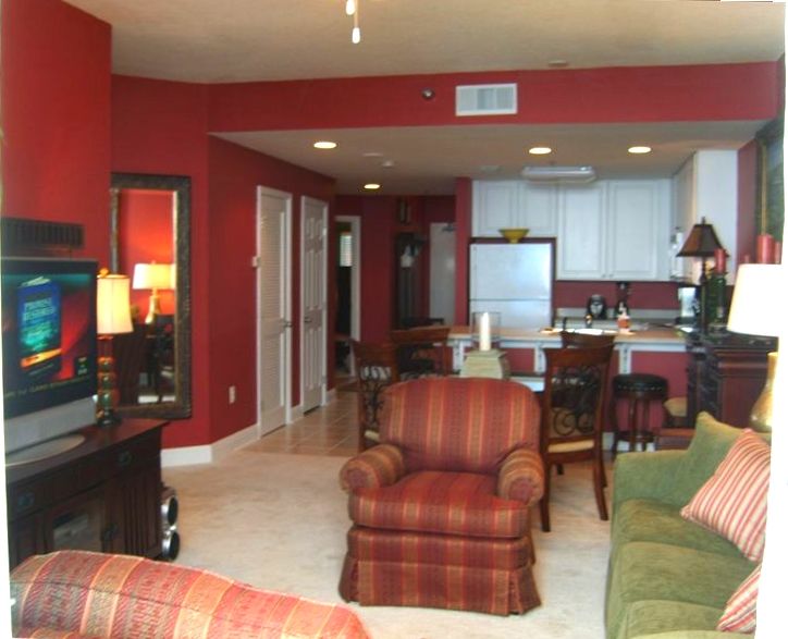 OURS IS A TRUE 2 BEDROOM/2 BATH + BUNK ROOM + SLEEPER SOFAClarification: Some of the units at Lighthouse advertised as 2 BR/2 Ba actually have 1 full BR, a bunk room, 2 Baths and a very small living/dining area. Just in case you're really looking for 2 full Bedrooms, we wanted to clarify that IS what our unit has. Our unit is on the 15th floor, almost Penthouse level!! If this is not for you, see our listing at 43334 for a lower level unit. We have tiled the living area and upgraded the bedrooms with designer carpet. With Tuscan red warmth and a mix of new and antique, quaint and comfortable we think you'll enjoy this year's trip to the beach completely. We do hope you agree that we have more character than the usual all white, wicker Condo rental. The building is loaded with amenities plus we've tried to add some nice up-grades for your special family vacation. After you park on the 2nd level in the covered parking deck (or third level - not covered- if 2nd is full), take one of the middle high speed elevators to your heavenly home above the Gulf of Mexico. Your front door is just steps away to the east of the central elevators. Windows all the way across the Gulf side of the condo, living area and master bedroom balcony frame the 635' of private beach & oceanfront. YOUR PERSONAL LIGHTHOUSE LUXURIES:300+ count bed linensSeparate Whirlpool Tub and Shower in Master BathDouble Vanity and Walk-in Closet in Master Bath (ladies!!!)9' Ceilings and ceramic tile flooringLaundry Room (not closet!) with full-size Washer & Dryer, Pantry and Cabinets in fully-equipped Kitchen with plenty of storageLarge Balcony for entertaining and relaxing (Dining for 4, Lounges for 2, Buffet)There is a king-size bed in the master bedroom, a queen-size bed in the guest room, a bunk room for the kids (sleeps two) and a queen-size sleeper sofa in the living area. As there are only two bathrooms, though nice, we don't recommend this unit for more than six adults(again, see 43334 for a 3 bedroom unit that will sleep 8 adults). The bunks are custom built in a separate, small room and are very sturdy but not intended for adults.There are High-Def cable flat screen digital TVs with BluRay in the living (52"), master (39") and guest room (27"). There is a stereo with i pod CD changer in the entertainment center in the living area, and 3 telephones for local calls. The building has wireless internet service.The Dining Table seats six or there is bar stool seating at the kitchen counter for four.Our unit is centrally located in the building, just steps away from one of the four (4) high-speed elevators to carry you from your covered parking space.The condo is equipped with a Temp Saver system that allows guest to regulate the condo temperature between 66-76 degrees. The building is loaded with amenities: 2 Gulf Front swimming pools, indoor heated swimming pool, nicely equiped exercise room and sauna, Hot tubs, as well as enclosed lobbies surrounding the elevators.ADDITIONAL RENTAL INFORMATION:* Must be 25 or older to rent unit; Adults & families only.* $300 refundable reservation/security deposit due within one week of making reservation* Full rental price due 30 days prior to reservation date. $85 cleaning fee. $15 car registration (max 2)* Weekly rentals only mid-March thru Oct; weekly rental only for Thanksgiving week; 5 night minimum otherwise* No Smoking and No Pets * Call or e-mail for availability. Any large commercial building of this size may have maintenance, repairs or improvements made from time to time. Examples may include but are not limited to painting, cleaning, elevators, pool heaters, vandalism to building or grounds. Even nearby construction may be distracting but not under the control of our Association. Individual owners have very little voice as to timing. We will disclose anything that we are aware of that could cause your vacation to be less than perfect. But, just as with the weather, cable or utility outages, etc ... some things are outside of our control. We do wish you a Perfect Vacation!Keywords: Gulf-front, richly decorated, vacation condo More details