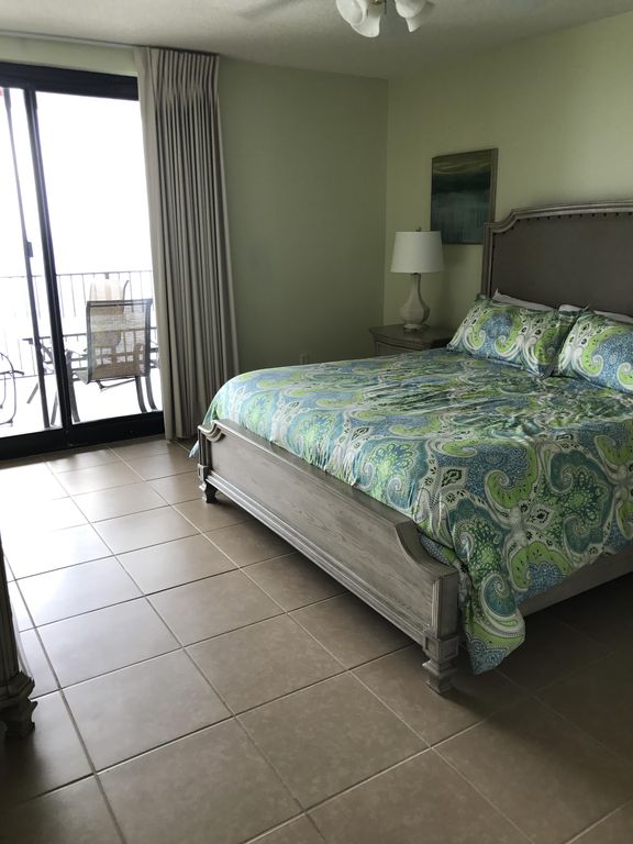 3 bdr/2bath condo, sleeps 10. Master and second bedroom have a king size bed, 3rd bedroom has 2 full size beds. Couch pulls out to a bed. Outdoor and indoor heated pools, kiddie pool, 3 jacuzzis. Just next to Flora Bama and very nice restaurants and Waffle House just across the street. You never have to drive, if you don't want to. This is unit 1210 and has just had a $60,000 upgrade. They set fireworks off directly in front of this condo. Very large balcony.