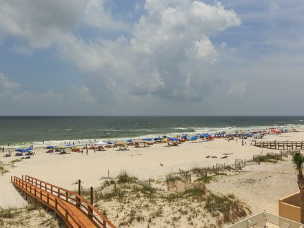 Construction completed in May of 2014. Luxurious beach house on pilings. The first level offers a Gulf front balcony across the entire beach front side of the home, the large living room, kitchen & 2 bedrooms with private baths. The second level has 2 Gulf front master suites with a shared balcony, a bunk room and 2 north facing bedrooms. The two master suites have private baths and there are two more shared baths on the 2nd floor. Sleeping arrangements include king beds in 5 of the bedrooms, 2 queen sized beds in one bedroom & 8 built-in twin bunks in the kid's bunk room. This home shares a Gulf front pool with the identical home next door and the duplex located behind it. Everything you need to enjoy your visit is included in this property such as dishes & utensils for 20+, a full sized kitchen% laundry room. Great property for a family reunion or corporate retreat. The Back Country Trail, part of the Gulf State Park, is perfect for walking, biking & running and is located right across the street. It's paved distance runs from Hwy 161 in Orange Beach all the way to The Peninsula Golf Course in Gulf Shores. Lots of interesting sights to see and plenty to do! Contact Richard at 850-255-1515 to rent beach chairs, umbrellas, kayaks & paddle boards or for sailboat rides.