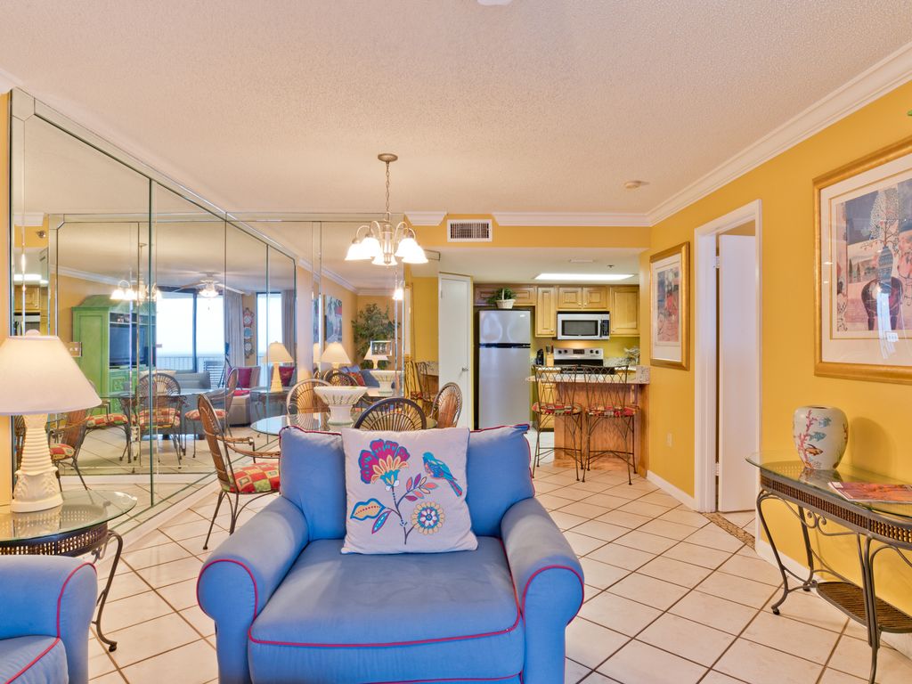 Happy place to be... Pass It Down!!!! Our 9th floor condo offers breathtaking views of the white sand beach and beautiful waters of the Gulf! The large beachfront balcony lets you enjoy your morning coffee while watching the dolphins swim, and the boats coming through Perdido Pass into the Gulf. From the Gulf front master suite you can hear the relaxing sounds of the surf. Phoenix East welcomes you with a spacious lobby and gathering area. FREE WI-FI in our condo and throughout the complex lets you stay in touch whether lounging by the pools or using the on-site meeting rooms for your business needs, wedding or family reunion.The pools have been recently completely renovated this Spring. The entire area around the pools have "cool-crete" that won't get hot in the summer. • On the beautiful white sand beach of the Gulf of Mexico!• Family friendly – FREE WI-FI IN CONDO & THROUGH OUT PHOENIX EAST• Fully equipped kitchen • Dining seats 4, Counter seating for 2 • Queen sleeper/sofa, Twin sleeper/ottoman, large flat screen TV, DVD player in living room• Master bedroom has king bed, flat screen TV balcony, bathroom• Guest bedroom has 2 Queen beds, flat screen TV and bathroom• Sleeps 8 comfortably• Washer & dryer, iron & ironing board• Table & 4 chairs and chaise lounge on balcony• 4 Elevators for your convenience• Meeting rooms available for business, weddings, family reunions• Large outdoor & indoor pools, 2 hot tubs, BBQ grills, Gazebos•Splash pad for the littles•New zero entry pool available •Use of Racquet ball, tennis, basketball courts, fitness room, saunas included in rental• Located 5 minutes from 3 major grocery stores and many, many restaurants!• Parasailing, dolphin cruises, jet-skis, & charter fishing trips available across the street!• Public fishing areas close byWe are only a few minutes from all the fun and activities, located less than 10 minutes from Gulf Shores and the Florida state line. Whether you want to fish, golf, shop at the Outlet Malls, spend time at the arcades, amusement and water parks, or enjoy the many festivals and concerts throughout the year, we are the place to stay!Our PASS IT DOWN is perfect for a winter retreat, family vacations/reunions, couples' getaways, or girls’ weekends! Pack your flip flops and plan your getaway!Contact Owner directly for opportunity for special pricing. More details