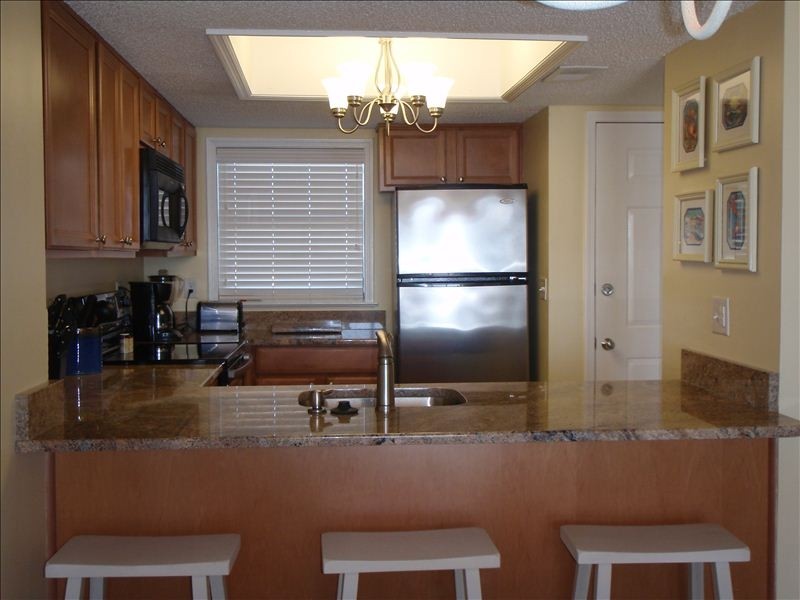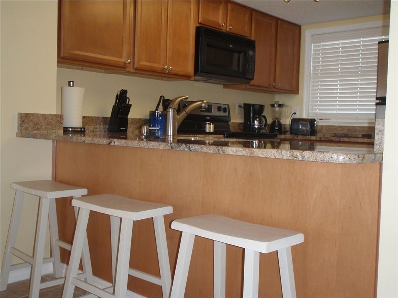 This 6th floor unit has been completely renovated recently with new furnishings. 18' tile throughout the condo. The kitchen has all the appliances, dishes, cookware, utensils needed for a great stay. Granite countertop throughout the kitchen and bar. The Living Room has a pull out sleeper sofa, two side chairs and a 42' TV. The master bedroom has a king bed with new linens and side tables with a 32' Samsung TV. The second bedroom has twin beds, 32'' Samsung TV and DVD player. Both bathrooms have updated showers, linens and granite counter tops. We also have our on private balcony which overlooks the large swimming pool and gulf, with great views.We also have free wifi.Sunswept is located directly on the sugar white beach that separates you from the emerald green waters of the Gulf of Mexico. It is just six miles east of Gulf Shores, Alabama. There are two elevators to serve you with ample parking for residents and guests. There are two charcoal grills for your use outside on the east end of building. You can walk across the street to Walmart, Winn Dixie, rent a movie, or go to one of the many restaurants without ever getting into your car. Keywords: Gulf front, Orange Beach, 2 BR, Beach, Swimming pool, Small Complex, Updated, Beachfront More details