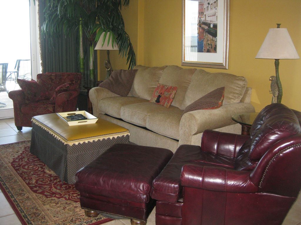 This luxury fourth floor condominium with nine foot ceilings has 1350 feet of living space, including a large 350 foot balcony. Stretch our, soak up some sun, or grab a good book on our balcony which includes a table with four chairs and two loungers. With the beautiful sugar white sand, warm ocean breezes, breathtaking sunsets and the peaceful sound of the surf, it is the perfect beach location.This unique area offers everything a vacationer would want. You can lay back and enjoy a quiet time on the beach or partake in the areas activities that will keep you hopping day after day. Enjoy your stay.This unit is tastefully decorated. It includes a stunning master suite, a spacious living room to relax after a fun filled day at the beach, a fully equipped kitchen with granite countertops.UNIT FEATURES-King, Queen, Twins and Queen Sofa Sleeper. Fold up crib/playpen.-Spacious three bedrooms with ample closet and drawer space.-Four cable TV's, VCR and DVD players, Stereo system. -XBox 360 for the big and small kids, books and assorted games.- ***Playpen and high chair available***.-Two George Foreman Grills.-Full-size laundry room, iron and board, vacuum.-Four telephones with answering machine.- ****** WIRELESS INTERNET ******** ***KEYLESS ENTRY******BUILDING AMENITIES-200 feet of beachfront.-Oceanfront heated indoor and swim through to outdoor pool.-Two heated whirlpool/hot tubs.-Exercise room.-Sauna and steam rooms.-Outside grilling area.-Two large elevators with utility carts for transporting belongings.-Beach boardwalk with showers(Built for handicap access to beach).-Beach rentals providing chairs and umbrellas.-Volleyball area.-Beach chair,floats and toys for use in our beach item recycle area.ADDITIONAL RENTAL INFORMATION-Non Smoking Unit.-Sorry, no pets (Local kennels available).-Pier 33 convenience store across the street has most of your beach and vacation needs. They have excellent coffee and don't forget the boiled peanuts.Keywords: Condominium More details