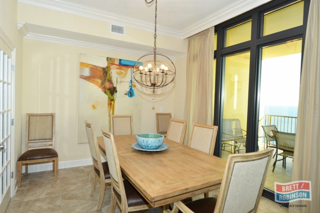 Charming 3-bedroom 4-bathroom condo on 17th floor of Phoenix West II. · Flat screen TV’s in living area and all bedrooms· Granite countertops and stainless steel appliances in kitchen as well as wet bar· Dining area that seats six· Jacuzzi tub with separate shower in Master bath· Gorgeous view from tiled Gulf front balcony