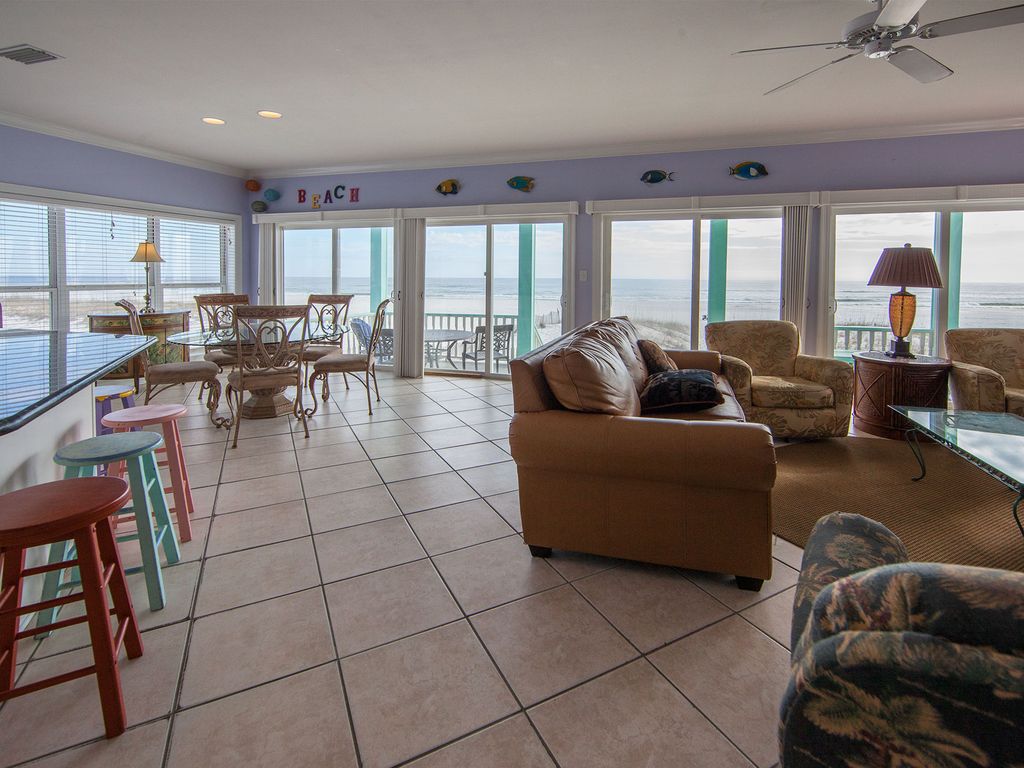 ** We have some Spring Break availability (March-April) remaining at some of our homes. Call today.** Please contact us at 251.732.4020 or use the SEND EMAIL function BEFORE making a Booking Request or using Book Now to see if the property is available and to confirm rates for the period requested–these may delay your response. The best way to contact us is by phone call or text at 251.732.4020. Thank you. Mention Fall4Fall for 25% off stays of 5 nights or more.Located directly on the beach of the Gulf (1499 W. Beach Blvd) and consisting of 3000+ square feet, The Seafoam is perfect for reunions, large get-togethers or families seeking space in an upscale setting with unparalleled beachfront access.The Seafoam is made up of six bedrooms and an extra room, which welcomes 16+ people. Sleeping accommodations include: one king-sized bed and one set of twin beds downstairs as well as two queen-sized beds, a pair of twin-sized beds and a pair of full-sized beds upstairs. In the bonus room, you'll find a twin-sized bed and queen-sized sleeper sofa and in the living room there is an additional queen-sized sleeper sofa. This two-story vacation home includes many exterior features. The Seafoam is decorated with decks. In fact, each bedroom has access to a deck with a beautiful view of the beach and Gulf, which makes for many photo ops! Other luxurious features include a covered carport, storage space for towels and sunscreen as well as an outdoor, enclosed shower so the carpet doesn't begin to blend in with the beach!In addition to exterior amenities, The Seafoam also includes deluxe interior features, like two central air systems that will certainly cool sunburned vacationers. It's both relaxing and entertaining inside with a jacuzzi tub and large-screen cable televisions with VCRs. Additionally, the kitchen is efficiently equipped with a garbage disposal, dishwasher, microwave, custom-made cabinets and two refrigerators/freezers for storing a surplus of summertime snacks. Ceramic tiling in addition to washer and dryer units make it easy to tidy up after sandy soles.Additional Rental Information:- Quoted rates do not include 9-11% sales tax and a cleaning fee.- The provided rental rates are not guaranteed as they are subject to error, omission and change. Please, call or email for the most up-to-date information and details.We personally own all our homes in the Gulf Shores area, from brand new 12 bedroom luxury homes with elevators, down to 5 bedroom, nice, comfortable houses that will make you feel right at home. Places are available that can accommodate up to 44 in single homes and 56+ in double-sided duplexes. Or rent several side by side for virtually unlimited options for your friends and family.Keywords: vacation home, vacation house, beachfront, gulf shores, large, large groups More details