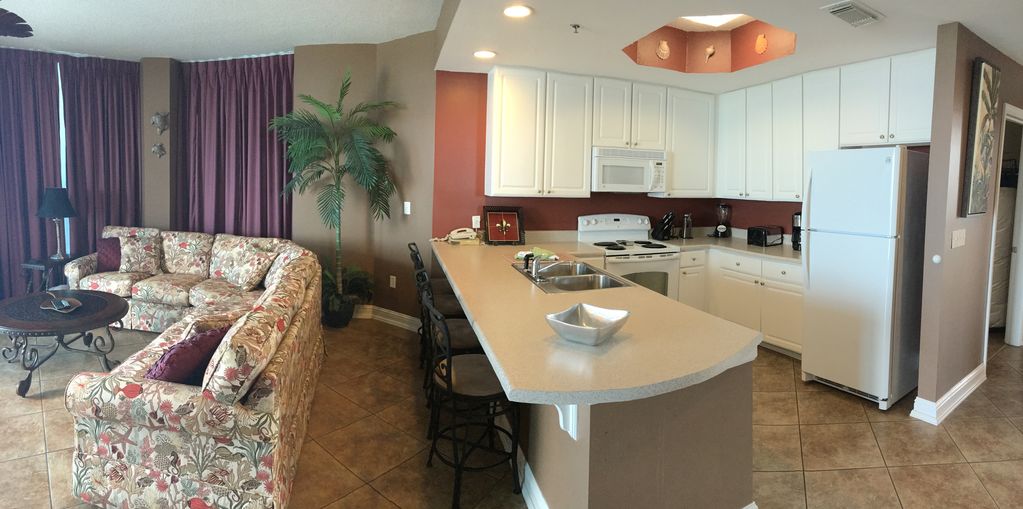 Welcome to your next vacation home ! Our condo # 318 at The Lighthouse is everything you'll want and more!For starters, the condo is on the 3rd floor and you are able to park outside of your front door and walk right into your room. The complex has two covered levels of parking with the parking deck extending to the 3rd floor. You are able to enjoy the beach and feel like you are 'right there'. The placement of the condo allows you either to be seated overlooking the pools to keep an eye on the children or grandchildren at the pool or to be nearer the middle where you have total peace to hear the waves crash on the beach. Our clients LOVE the fact they are steps away from their vehicle and it makes it so much easier when packing in supplies and going out for the day around town. The elevators and stairs are both located nearby for when you want to venture downstairs . Also, this unit is a true 3 bedroom and three bath- please keep this in mind since it does have the capability for a larger amount of guests since our bedrooms here are full size. You'll have the best of all worlds at this complex since it is one of the newest buildings, has the ultimate location and the most amenities available around. Our other two units are also on VRBO and at The Lighthouse complex , one being a 2 bedroom with bunkroom/2 bath (unit 314) just a few doors away. The other is Unit 1004 and is a 3 bedroom/3 bath ( all king beds!) .Unit 318 is a west corner condo with an 85 foot long wrap around balcony with three accesses. One from the master bedroom, one from the guest bedroom and one from the living room. The balcony has seating for six with two small side tables. The living room and kitchen has a break-taking view of the beach with the floor to ceiling windows! The entire condo has been tastefully and comfortably decorated. All of the condo has tile with the except of the bedrooms which are carpeted. All of the beds have pillow top mattresses, including an add-on for the sectional sleeper sofa and two twin size air mattresses for added use. The gulf-facing master bedroom has a king size bed, the gulf-facing guest room has a queen size bed and the 3rd bedroom has a full over full bunk bed ( suitable up to 300 lbs. on top bunk). The bedrooms have drapes with blackout lining as does the living room. Each bedroom has their own private bathroom with separate room for shower and commode. The commodes are handicap height and the master bathroom commode has a handicap bar. The water heater for the condo is 80 gallons so everyone can enjoy a hot shower with no worries ! Since this unit can comfortably sleep 10 or more, we felt it was best to install a larger heater for everyone's' comfort. The dining area seats six and there are an additional 4 seats at the counter. The kitchen is very well equipped for all of your cooking needs. All major appliances are in place and counter appliances including a heavy duty blender, coffee maker, can opener, toaster and crock-pot. The laundry room is large and well equipped with a iron, ironing board and drying rack for wet bathing suits. All linens are provided with the exception of beach towels. The living room has a large wall mounted HD/LCD TV with DVD and VCR player. Each of the bedrooms also have their own TV with built in DVD player too. The TV's have a good variety of cable channels and we also have a small video library there in the condo.When it comes to amenities- The Lighthouse has it all! There are three pools total- one being an indoor heated pool. The two outdoor pools are very large and one is a zero entry with water spouts which is just perfect for small children. The outdoor pools also have heat-assists in the spring. There are two huge hot tubs that could each easily seat 16 people. The fitness center has numerous machines and is always in demand. It has a beach view and televisions too. The sauna is just right around the corner from the fitness center. The Lighthouse itself is less than 1/2 mile down from the intersection of East Beach Blvd. and the Gulf Shores Parkway (Hwy. 59). It is right in the heart of Gulf Shores and is literally 5-15 minutes from everything you will want to see and do while you are on vacation on 'Pleasure Island' - the name of the two cities Gulf Shores and Orange Beach .The 'Sea and Suds', Hangout, Waffle House, Best Western Pancake House and Hooters are all within a comfortable walk. There is a Wal-Mart, two chain groceries, two major drug stores, multiple 'beach' retailers and nearly two dozen more restaurants within a 5 minute drive. The Tanger Mall is less than 15 minutes away and most amusements parks and the 'Little Zoo that Could' all also under this time limit. The Gulf State Park ( with a public access golf course) is 5 minutes from your condo and there are around 15 courses in the Gulf Shores/Orange Beach/Foley area. There is so much more to see and do than the beach: Head to Ft. Morgan to see the historic army post and museum or towards Pensacola to watch the world famous Blue Angels team conduct practice flights and then stop at the Naval Aviation Museum. Another favorite is near Mobile at the U.S.S. Alabama where you can tour the battleship, submarine and tour their flight museum. There is also live greyhound racing in both Pensacola and Mobile but please be sure to check minimum age limits and race times. Wind Creek Casino is only about 1 1/2 hours away north on I-65 . Another place to check out is 'The Wharf' in Orange Beach - they have great shopping, a movie theatre and a 10,000 seat amphitheatre that hosts major recording stars. There are jet ski rentals, parasailing, diving trips and kiteboarding all offered close by. It is so easy to forget about the rest of the world while you are here, from peaceful early morning walks on the beach, soaking up the rays in the sand or unwinding from the days' adventures on your balcony. Keywords: Gulf front, beach front, ocean front, condo More details