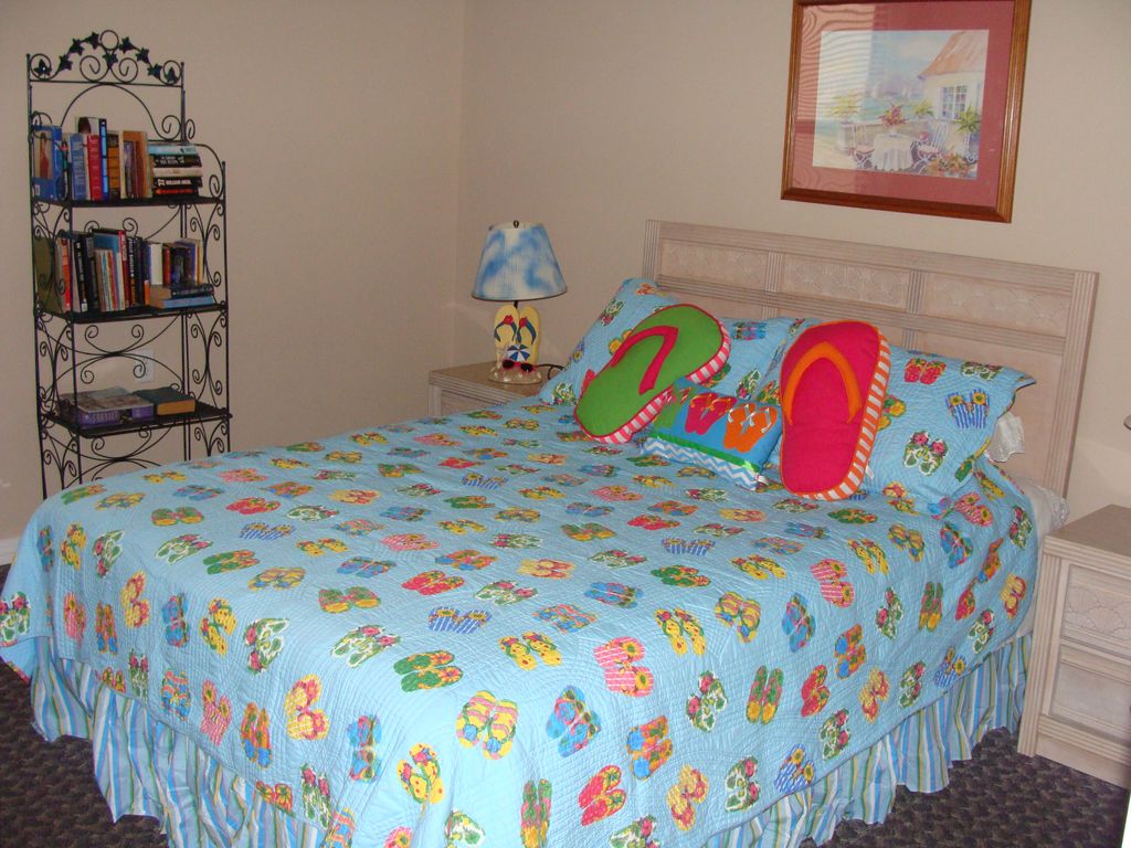 This condo has a complete kitchen . It has a stackable full size washer/dryer. The dining table seats 6 plus bar stools at the bar. Tile is located in the dining area , kitchen, and bathrooms. Carpet is located in both bedrooms and the living area. The Master bedroom has a king size bed with a door to the balcony. The windows in the master bedroom can be opened to hear the ocean. The second bedroom currently has a queen size bed, but we plan on adding more sleeping quarters. Both bathrooms have a tub/shower configuration. The facility has a pool, BBQ pit, exercise room and a rentable party room.