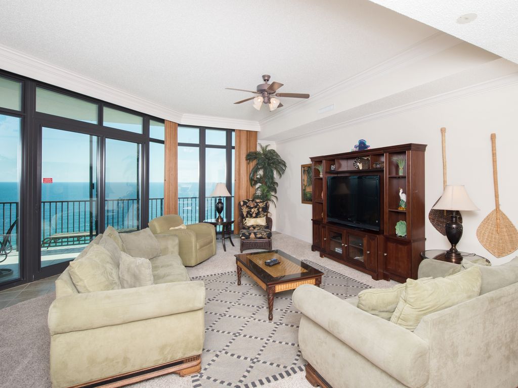 Welcome to the beautiful white sand beaches of Alabama's Gulf Coast! Enjoy your stay in the brand new, beautiful 3 bedroom, 4 bath condo that easily sleeps 10! Our 15th floor unit is unique in the fact that you have glorious views of the Gulf from every room! Large open floorplans offer visitors room to spread out and the huge balcony invites you to take in the unbelievable views of the Gulf of Mexico for miles. Wake up each morning with spectacular views from each of the bedrooms. This unit features flat screen televisions in each room and a large LCD in the living room. A wet bar with ice maker and a large kitchen makes entertaining a dream.When you are ready to leave the unit, right downstairs you can enjoy the huge indoor pool, sauna or fitness room. And right outside, this complex features the only lazy river on the beach along with water slides and another large pool for guests of all ages to enjoy. If you are so inclined, walk directly onto one of the most beautiful, white sand beaches in the world! This unit is a non-smoking unit. All renters must be 25 years of age to rent and there are no pets allowed. We have offered three telephone numbers to make it easy for you to make your vacation reservations. Please call. Any of the numbers below will get you through to someone that is happy to help you with your rental needs! Thank you!Keywords: Condominium Please Note: Reservations are subject to change or cancellation up to 45 day of arrival date in the event the unit becomes unavailable or is sold. A full refund will be provided if these circumstances arise. Thank you. More details