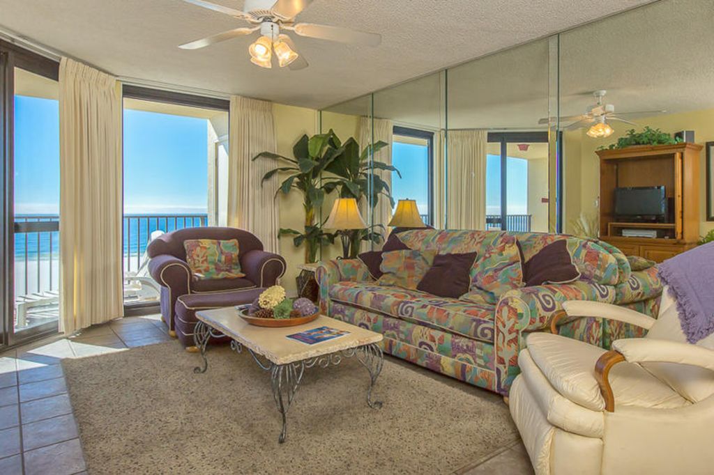 AMAZING VIEWS of the Gulf and the Pass from this 6th floor Direct GULF FRONT Unit located at Phoenix VI Condominiums in Orange Beach. You can see miles of Gulf waters, for Dolphin watching or enjoy seeing the boats float by. A fully functional kitchen is right at your fingertips and offers all that you will need for making family meals. The dining area accommodates 4 with a decor that is stylish and contemporary. A breakfast bar for 2 adds even more room for the entire family. A spacious living area with tons of comfortable seating that makes for a perfect place to settle in after those long, playful days at the beach! Both the master and guest bedroom are equipped with flat screen televisions, and Dish Network offers 200 channels. When you enter this wonderfully furnished unit, you will be taken back by the breathtaking views of the white sandy beaches, crystal blue waters, and wonderful views of the pass. The open floor plan allows you to provide a fabulous meal while socializing with guests in the living area and providing a wonderful water view. The master bedroom provides a large comfortable king size bed, large flat screen, attached bath, access to the balcony, and beach front views. The Guest Bedroom offers two double beds, flat screen tv, and a spacious attached bath. Unit features a washer and dryer, ironing board and iron in the unit. All linens are provided, just bring your beach towels and sunscreen!You can enjoy all of the wonderful things that Orange Beach has to offer including, shopping, dining, water sports, dolphin cruises, movie theaters, zip-lining and so much more! More details