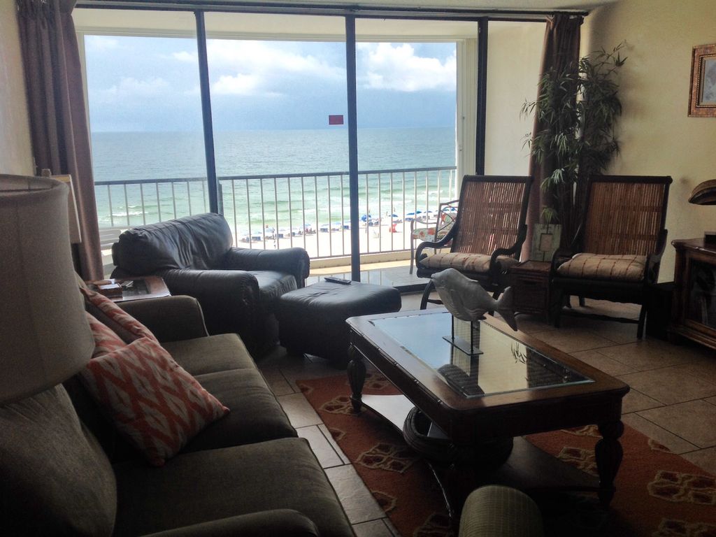 Relax! You’re on vacation. Put your feet up in this comfortable yet tastefully furnished condo that has all of the conveniences of home. This two-bedroom, two-bath, 1200 square foot vacation home has a king-size bed in the master bedroom, and a guest bedroom containing two full-size beds. Each bedroom has a flat screen TV and DVD player. In the living room, you can unwind in front of a brand new 65” flat screen TV. Cable and Wi-Fi are provided. Both bathrooms have been recently renovated. The master bath has a walk in shower, and our second bath has a tub/shower combination, perfect for relaxing. The renovated kitchen has new cabinets, granite countertops and stainless steel appliances as well as a washer/dryer for your convenience. Enjoy breathtaking views from the living room, kitchen and master bedroom, or sit outside on the balcony with a tasty beverage. The Breakers low density building and excellent location make it a favorite with many return guests. Nothing separates you and the beautiful clear waters of the Gulf except the sugar white sand. The pool is situated by the Gulf front to provide guests with the perfect place to relax, unwind, take in the sun and capture exceptional views. Watch the boats go by or catch a view of dolphins playing in the surf. You will find outstanding restaurants, three supermarkets and a new upscale shopping center within walking distance. You’ll find yourself “hooked” and want to return again and again to the beauty, fun and relaxing good times. Leave your stress behind…you are on beach time here!