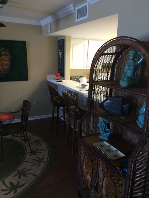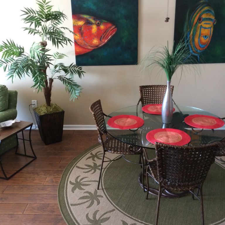 Completely redecorated May 2014 by new owners. This 4th floor, NON-SMOKING, condo has breathtaking views from the living room, master bedroom, and kitchen. Our 1200 sq ft condo has two king beds and a queen sofa sleeper, two full bathrooms with curved shower rods, a fully equipped kitchen, three flat screen TV's, a washer/dryer combo, and complimentary wireless internet. Most of the artwork were painted by local artists !LOCATION IS EVERYTHING !! We are located across the street from three supermatkets, a dozen or more great restaurants, a video rental store, and an up-scale shopping center. Enjoy your morning coffee or cool afternoon drinks on the spacious balcony while watching the dolphins swim by. You and your family will love our refreshing pool and the beautiful white sandy beaches.Come see why The Breakers in Orange Beach is one of the most popular condos with it's beautiful sandy beach and swaying palm trees !