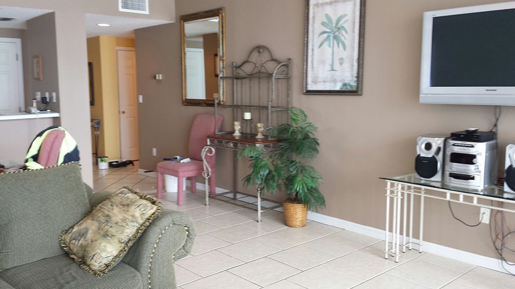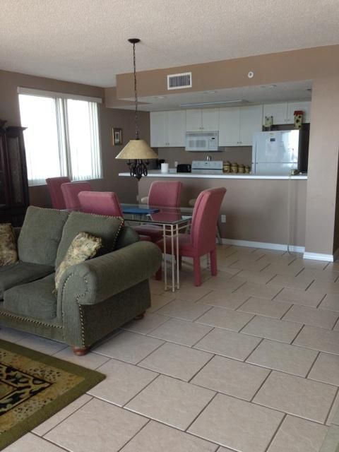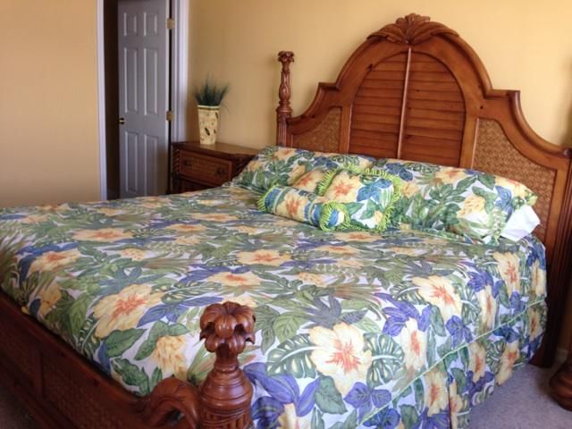 Beautiful 3 BR, 2 Bath beach front corner condo with wrap around balcony facing pool and beach. Master bedroom has king bed with a walk in closet, a 32' flat screen television with a DVD player, master bathroom has double vanities and a garden tub. First guest room has 2 queen beds and adjoining bathroom and other guest room has 1 queen bed with a balcony for a beautiful view of beach and street area. Walking distance to many restaurants and stores. Brand new carpet in the bedrooms, new ceilings fans installed in 2 guest rooms and new tile on balcony just installed.