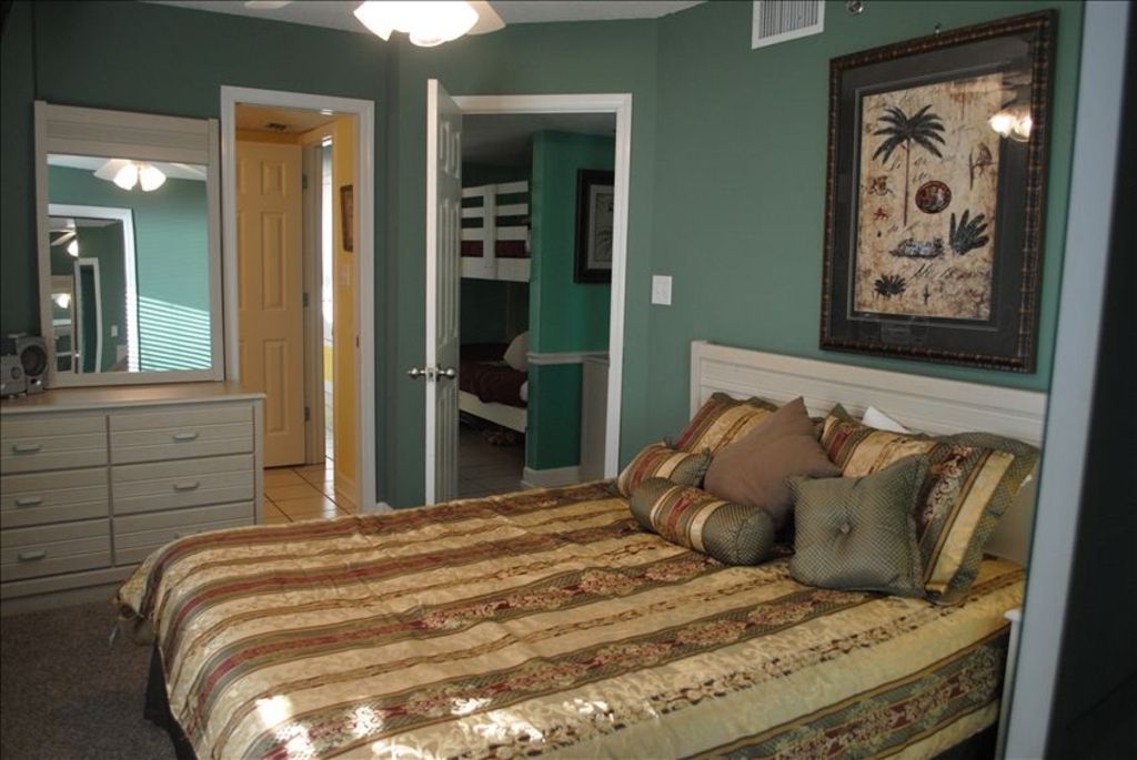 This is a top floor unit (meaning very quiet, no one above you). Southeast corner with windows in both bedrooms, kitchen & living room. Great morning sunshine. The balcony, with patio table & chairs, is a great place to set and watch the sunrise, dolphins in the gulf and a beautiful sunset. Full view of the beach, east and west. Located just west of Gulf State Park, which means beaches are never crowded. One covered parking space is with this unit. No loading or unloading in the rain! Fully equipped kitchen. Master bedroom has a king size bed and second bedroom has queen, both have flat screen TV's. Bunk beds and pull out queen sofa and a 40' flat screen TV. We provide a few beach chairs. Great place to get away and relax.Keywords: Beach front, condo, 2 bedroom, bunk beds, 2 bathroom, sleeps 8, corner unit