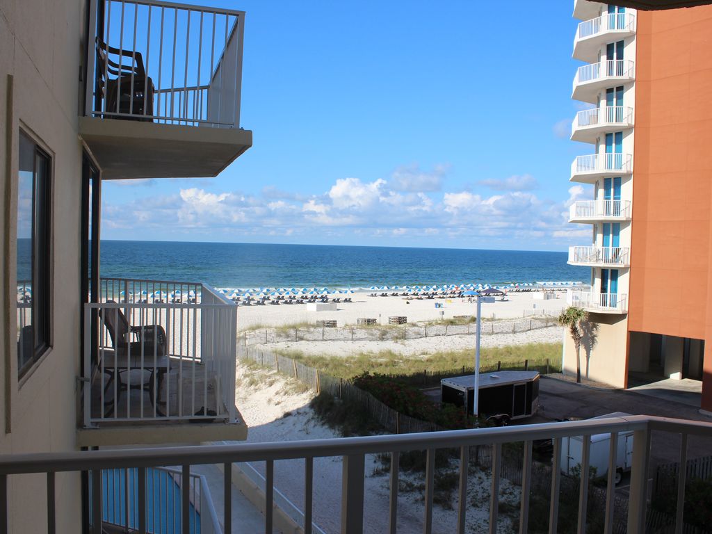 Two bedroom / two bathrooms. Sleeps six. This beautiful third floor condo has a wrap-around balcony overlooking the beach with breathtaking Gulf views. In the heart of Gulf Shores. The Whaler is a 7 story high-rise with a large beach-side pool. Our condo has a fully equipped kitchen, washer/dryer, internet, cable, telephone. The unit is nicely decorated and we are constantly updating the unit for your pleasure and for ours. Walking distance to attractions and restaurants.