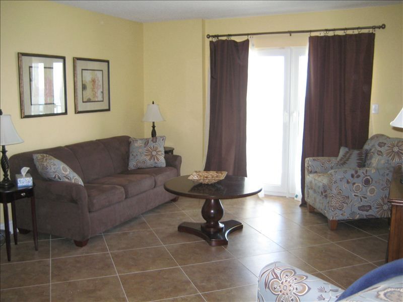 Direct Beach Front! Located directly on the beautiful white beaches with awesome views of the Gulf of Mexico, this seventh floor, two-suite unit was recently remodeled. Included in the remodel was a new floor plan, making the unit unique to the complex. Located one mile west of the T, the complex is convenient to all restaurants, shopping and night life.New paint and décor in every room and large 20x20 porcelain tile throughout the unit offers an updated style to enhance your vacation. The kitchen boasts custom-built traditional cherry cabinets that are well stocked with heavy gauge stainless steel cookware and serving pieces. Stainless steel matching appliances, and granite countertops make an inviting place for you to enjoy. The living area has French doors that lead onto the balcony so you can watch the dolphins playing. Doors have both light filtering sheers and light blocking drapes. Watch your favorite programs or DVD on the 32 inch flat panel television. Master bedroom also has French doors onto the 20 x 8 private balcony. Lie in bed and watch the sunrise or, close the light blocking drapes and sleep in. With a king size bed, you might not want to get up! A flat panel television is included. The master bath features custom-built traditional cherry vanity, sink and faucets. This bath has a full tub with shower. New lighting and décor complete the bath. Second bedroom boasts a queen size bed with all new bedding and, a view of the lagoon. The guest bath has all new custom-built traditional cherry vanity, with new sink, faucets, and mirror.A stacked washer and dryer are included for your convenience. FREE high speed internet access via wi-fi is included, along with free local calls, and cable. Amenities also include iron and ironing board, blow dryer, and all linens.The complex has two pools, one heated, and two kiddie pools. Best of all, you are only a few short steps to the beautiful sugary white sand beaches! A security guard is on duty for your safety.Keywords: Beachfront, condo, direct gulf view More details