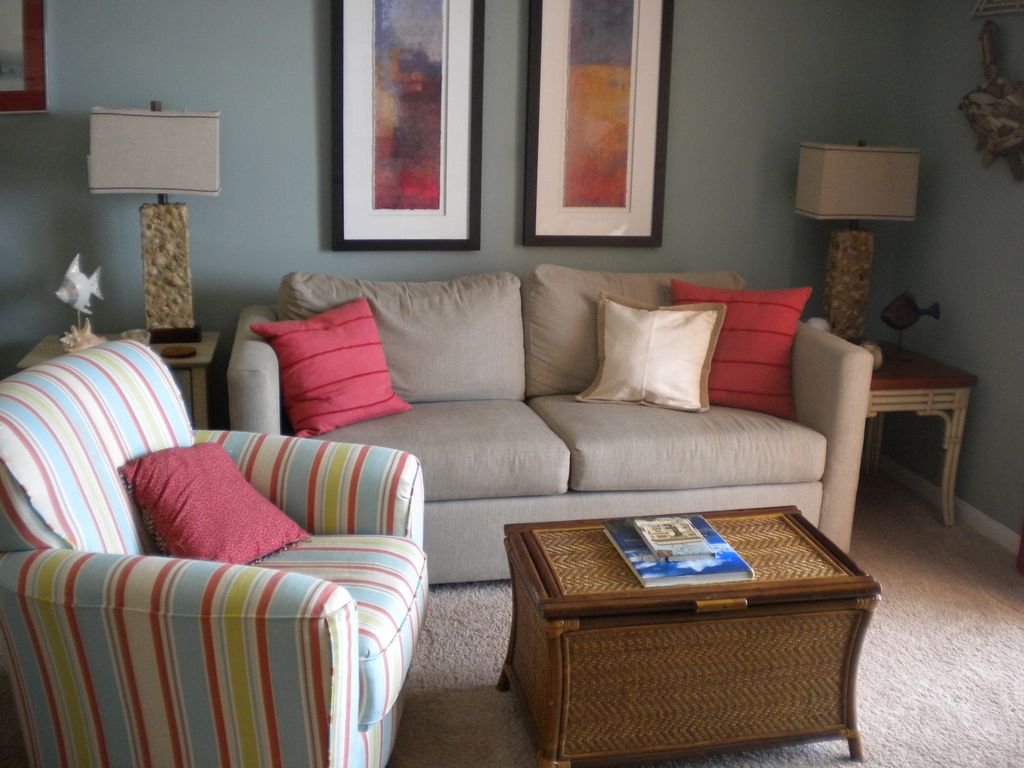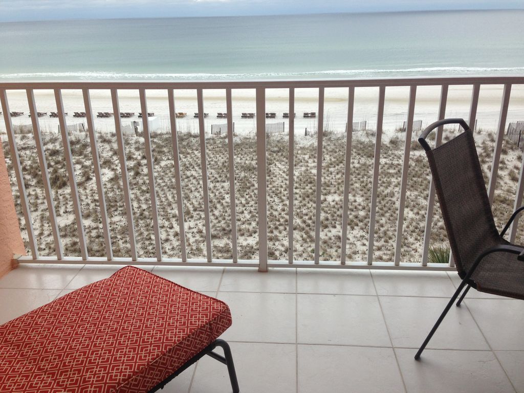 Hello! As owners of this beachfront condominium, we are excited to list our beautiful vacation home for rent. We would like to ask that you please contact us directly for an accurate quote and do not rely on the automated quote system offered by Home Away. As always, we have a free night built into our WEEKLY stays as an extra incentive for those weekly travelers and the quote system does not recognize that. Additionally, we do not participate in the option to book on the website because Home Away charges our renters at least $100 in hidden fees. We strive to offer the best rate possible and save our renters as much money as we can so they can spend it at the beach!!!Located on lovely West Beach, enjoy breathtaking views of white, sandy beaches and emerald ocean from your private balcony of this 4th floor unit. Master bedroom with KING bed, and two hall bunks with a pocket door to separate them from the kitchen/living area. The grounds include a swimming pool and hot tub area located on the beach, a gazebo and two charcoal grills for grilling. Close to shopping, restaurants and entertainment. As we continue to update and remodel this condo, we are please to offer it to you for rental at competitive rates! Our unit includes iron and ironing board, luxury bath and bedding linens, beach chairs for your use while in our condo, 2 cable tvs, DVD/video player, Elevator and luggage carts. We also have brand new appliances in the kitchen! Keywords: Beachfront Condominium directly on lovely West Beach in Gulf Shores More details
