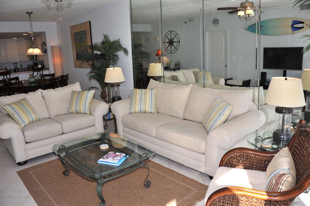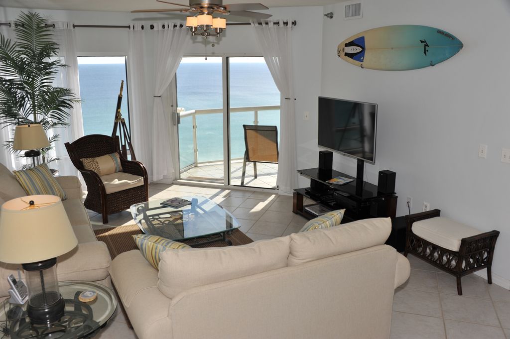 Emerald Isle is a 17 story luxury high rise on approximately 5 acres with 300 feet of Beachfront directly on the Gulf Of Mexico.Attractively decorated and tastefully appointed, this luxurious 11th floor condo has spectacular views of the white sand, pristine emerald waters, swimming pools, hot tub, and the Blue Angels (when flying) from the living room, master bedroom and private balcony. The private balcony is accessible from both the living room and master bedroom. Guest bedroom has beautiful views of the bay during the day and of the skyline of the city at night.Kitchen, dining room, living room and both bathrooms have beautiful large tile throughout.The kitchen is fully equipped with stainless steel appliances. Washer and dryer are included in the laundry room.Dining room has a 5 foot square counter height table with seating for 6 and 2 additional chairs at the bar.Living room features a comfortable queen size sleeper sofa with love seat, large rattan chair and ottoman, and a private telescope for beach and water viewing. 52'' lighted ceiling fan helps keep a cool breeze flowing on those hot summer nights. Master bedroom has a king sized bed with memory foam mattress.Guest bedroom has a queen sized bed with pillow top mattress.The bedrooms feature shaker furniture with a casual twist of antique black painted cases and natural solid mango tops in the master and antique white in the guest bedroom. Both bedrooms also have lighted 52'' ceiling fans.Porcelain tile throughout including both bedrooms.The master bathroom features a large garden tub. For entertainment there is a 47'' LG LED HDTV with upconverting Sony dvd/cd player, as well as Sony AV receiver in the living room. The master bedroom has a 40'' Samsung LED HDTV with upconverting Sony dvd/cd player. The guest bedroom has a 26'' LG LED HDTV with upconverting Sony dvd/cd player.Wireless internet is also provided at no extra expense.FREE beach chairs and umbrella setup on the beach right behind Emerald Isle. This is about a $200+ savings for week long stays. Beach chair service is only available from March through October.A nicely equipped gym with attached sauna are conveniently located on the ground floor.Relaxing and calming, this condo will rejuvenate, reinvigorate, and revitalize your life. You will want to come back again and again.Keywords: Condominium More details