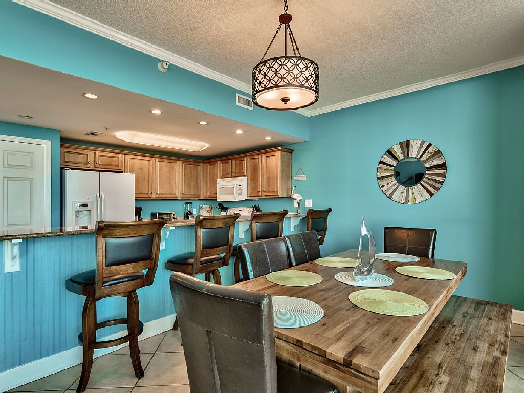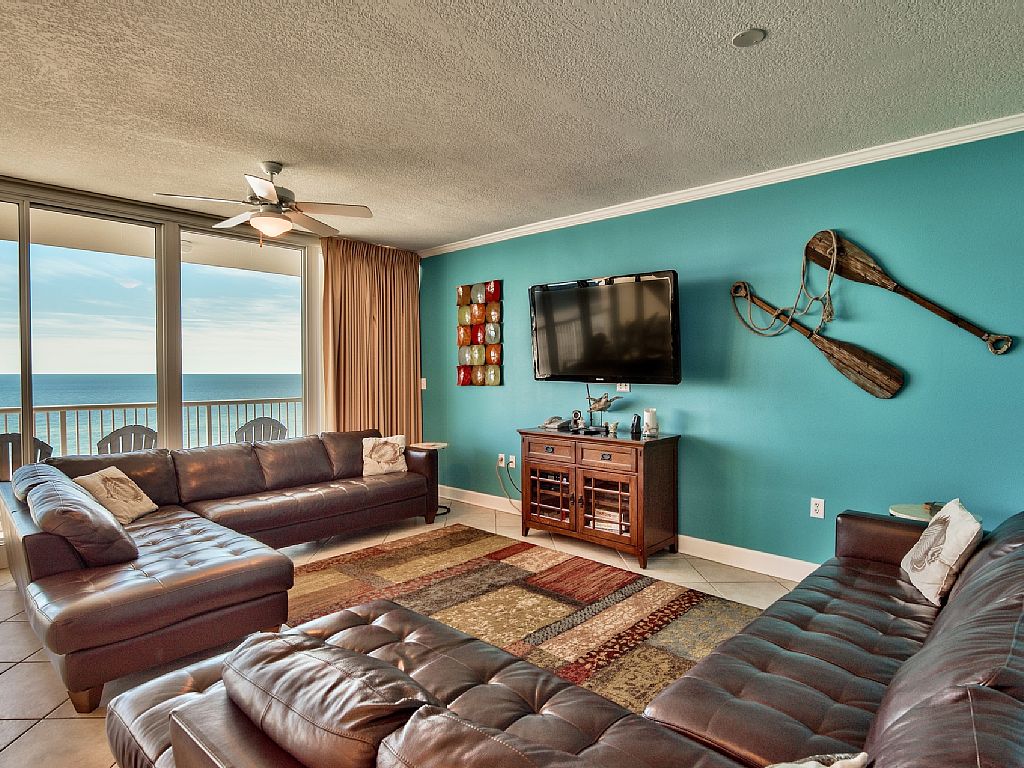PINCH YOURSELF – once you see this view you know your vacation has started!!!The VIEW is perfect. The wall of windows will give you a picture perfect view of the white sand beach and never ending Gulf. On the lagoon side, be sure to enjoy the glowing sunsets and endless fishing off the public pier, all located within walking distance of the condo. When the day is done, don’t forget to sit back and relax on your private balcony after a day of fun in the sun. You will need to pinch yourself a time or two to know that your vacation is a dream come true. The living room and dining room open up to the granite counter top kitchen. The living room has two large leather sectionals, a 55” TV, blue ray DVD player, aux cord speaker system with Pandora, and free Wi-Fi. The dining room seats 6 and a kitchen counter that seats an additional 4. The kitchen is fully equipped with a refrigerator with ice maker, a stove, oven, coffee maker, toaster, blender, glasses, dishes, and pots/pans. This condo offers 2 bedrooms and 2 ½ bathrooms with bedding to accommodate 6 people. The master bedroom features a king size bed. The second bedroom features a queen size bed and a set of bunk beds. Each bedroom includes a TV and private bathroom. The private bathrooms include a tub/shower, granite counter top with a double vanity, and crisp white towels.For your convenience, the condo has a stacked washer/dryer, iron, ironing board, a heavy duty beach cart and a rolling cart.This 1236 sq. ft. condo is approximately 2.5 miles from I-59 on West Beach Blvd. (The Hangout). Sanibel offers a pool, a baby pool, a workout area with a sauna and a grill area located near the outdoor shower.There are many activities you can enjoy in and around Gulf Shores: chartered fishing, jet-ski, kayaking, scuba & snorkeling, dolphin cruises, water park, air tours, miniature golf, zoo, movie theaters, the Tanger Outlet mall (loaded with many name brand stores), The Wharf (attend a concert, specialty shops, ice cream shops, restaurants) and many more!The greater Gulf Shores area hosts many Festivals throughout the year: the Baldwin County Strawberry Festival (April), The Hangout Music Festival (May), the Shrimp Festival (October) and many more. The Alabama Gulf Coast Chamber of Commerce website, www.alabamagulfcoastchamber.com, has a listing for Current happenings/Chamber Events/Community Events and more.My goal is to create a relaxing and comfortable getaway for you, your family and friends.So PINCH yourself . . . it’s real. And remember, life is better at the beach -- BOOK NOW!!! More details
