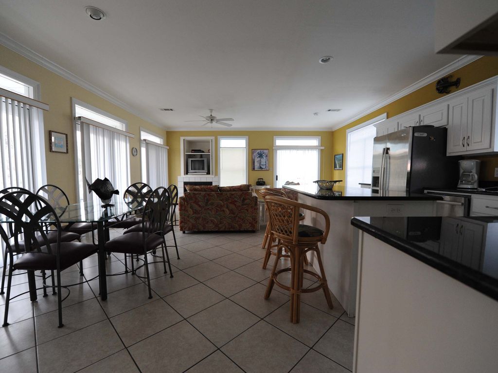 PEAK SEASON: SATURDAY TO SATURDAY ONLY. 10 PERSON MAXIMUM OCCUPANCY. RENTERS OVER AGE 25 ONLY.Consider a spacious, comfortable beach house instead of a crowded condo. Not your average rental, our home is newly decorated with a classy and contemporary beach casual style. Escape to your own private paradise since every bedroom has access to its own decks. There are 4 bedrooms: two of which are master suites! One master suite has a king, and the other a queen bed with its own bathroom. The 3rd bedroom is a 'kids room' with queen, full bunk bottom, and single bunk top beds - enough for 5 kids max in this room alone. The 4th bedroom is small and cozy, with its own balcony and closet - perfect for the lone single adult/teen who wants a bit of privacy. There is a separate laundry room with full-size washer and dryer for renters. We know how wet/dirty clothes can pile up on a beach vacation. The house is fully equipped for families to relax and enjoy a home away from home. New stainless steel kitchen suite has top of the line WHIRLPOOL GOLD brand matching stainless steel appliances. There is a fridge ice-maker, and water filter for sparkling cold water. The counter-tops are fully new granite. The gourmet chef of the party knows that our fast convection oven cooking can prepare a full meal in no time. Even equipped with a warming mode, it is a true joy for the hungry vacationer. All matching appliances - easy on the eye and a pleasure for cooks. Enjoy your morning coffee off the dining room balcony with a sunrise lagoon water-view enhanced by the sounds and smells of the beach; or stroll to the private sub-division dock to watch the sunset with a glass of wine. The 5 amazing decks makes it a pleasure to laze the afternoon watching the lowering sun, or just people-watching the neighboring vacationers. There is a clean and private community pool with umbrellas and chairs just steps away. Floats are provided in the front door closet for guests. Maybe you will choose a swim in the surf, sunbathe on the sandy beaches, or take a slow walk searching for beach treasures. The beach has a boardwalk entrance over the dunes, with a outdoor shower right there for afterwards. Try fishing, crabbing, canoeing, or kayaking from the sub-division pier steps away from our house. Kids particularly love the abundant crabs, plentiful fish or occasional shrimp caught off the pier. A state park is just three blocks west where the fishermen gather at sunrise and fish until their coolers are full. The spot under the bridge (called the 'Pass') is especially favorable for angling. Ask locals for the latest hot-spot and best bait reports.Few homes in the area offer the luxury and ambiance for this price. Adults can eat or relax on the many decks and balconies, while children play or watch TV. Everyone can get together for meals, play games, or watch a movie in the combined kitchen and living great room. Or you may choose to dine on the covered deck off the kitchen. Fully equipped tasteful furnishings, and all tile floors provide clean contemporary living to enhance every moment you spend indoors. But on sunny days, activities abound just steps from the house in every direction.The floor plan is perfectly designed for two families on vacation (2 couples with kids). Also popular, are older retired couples that use the house for themselves during winter. This is our dream beach house and can be yours. We picked this house because it is located on the west side of Gulf Shores - quiet streets safe for bike riding, children playing, or slow strolls. And yet, it's a 2 minute drive to the busy shopping centers, restaurants, and tourist spots that families seek as a change of pace to the beach or rainy day. The memories we have will last a lifetime, and we want to share this wonderful experience with your families. We value responsible adults who share the same family values. The house sustained routine damage when rented out by the Big Box rental companies. Under our direct care, damage is almost non-existent. We screen and seek adult renters who want maximal enjoyment and appreciate all our fine house offers. ATTENTION: partyers, alcoholics, druggies, habitual damage to rentals - are not welcomed. We don't need your money, and don't welcome your type. If you try to sneak by the book our house, we will evict you and come after you in court. Don't try it. Save yourself grief and rent from the Big Box. Also, don't bottom fish here. The price is fair as listed, if you want to haggle - don't bother.If you have legitimate questions, please call. Keywords: Private Home More details