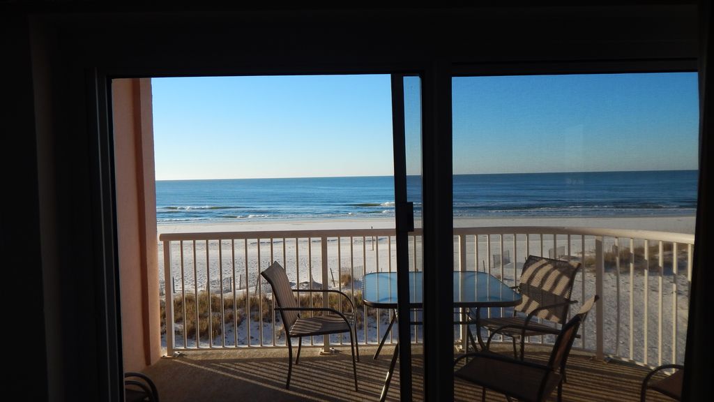 Enjoy the spectacular beachfront view of the Gulf of Mexico. This corner unit is on the 3rd floor and is the last condo on the beach prior to the beginning of the Gulf State Park and fishing/walking pier. This unit provides great sunset and sunrise views. Each room has windows allowing a view of the Gulf. This condo is furnished with everything you need for a relaxing, fun vacation. It is decorated with a beach theme. There is a king-sized bed in the master bedroom with private bath and a queen-sized bed in the second bedroom. The sleeper sofa is in the living room. The kitchen is also fully equipped and the washer/dryer is in the utility room. The property also has an outdoor pool, heated indoor pool and whirlpool hot tub and deck. Two miles of Gulf State Park beach starts next door. Best surf & pier fishing location on the beach. (Call or email owner for specific fishing details). Keywords: Beach Front, End Unit with windows along sides. Convienent location to restaurants, supermarkets, entertainment and Walmart. Easy walk to pier & great fishing.