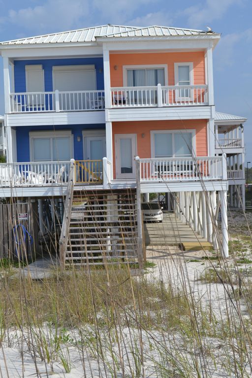Duplex Home. Great Location !BEACH TIME is located right on the Gulf, boasting over 100' of private beach. When you've had enough fun in the sun on the private beach, hang out in the shaded, sandy area under the house and watch the kids play while you grill out. Our 4 BR House offers:- 2 King Beds- 1 Queen Bed- 2 Twin Beds- 1 Queen Sofa Sleeper- Mounted Flat Screen TV's in Bedrooms and Living Room- Stainless Steel Appliances in a Fully Equipped Kitchen- Located Directly on 100' of Private Beach- Free WiFiOffers a close proximity to all Orange Beach attractions, restaurants.WE DO NOT UPDATE THE AVAILABILITY CALENDAR SO EMAIL FOR OPEN DATES. ***** Also refer to my listing #840854 *****