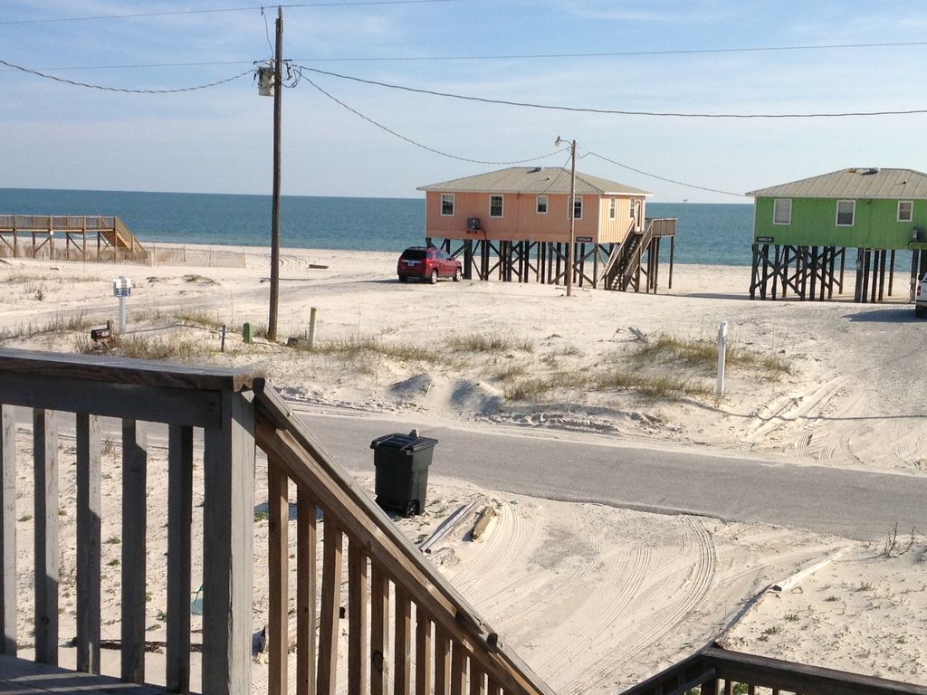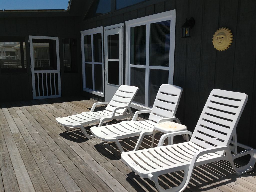 This is a great home for a family and friends. Kitchen has washer, dryer, ice maker and island. Master bedroom has adjoining bath with jetted tub. Additional two bedrooms are located on other side of living room with a bath between them. There is a deck on the front of the house with a screened porch also. Sun chairs provided for the deck and beach chairs. Downstrairs is a covered parking area and swing outside. The game room has a ping pong table, TV, DVD player, queen sofa sleeper and sleep bench. There is a half bath across the breezeway and a hot and cold, outdoor, enclosed shower. It is a great place for the family to enjoy when taking a break from the beach or on a rainy day. The game room is not connected to the main living area. It must be accessed from outside. Teenagers really enjoy this area, you may only see them at meal time!!!!! A restaurant is within walking distance along with grocery and beverage store. No pets or smoking in the house and encourage you to leave pets at home, there is a leash law for the beach. SLEEPS 6- upstairs. Sleeper bench and sleeper sofa in downstairs game room, but this room is accessed from outside stairs. It is not connected to the main living area upstairs. See photos.Sorry, but we do not accept contracts with student vacationers. Person who signs contract must be at least 26 years of age, present during the rental period and agrees to provide copy of drivers license for proof of age if requested by home owner. Responsible for any additional damages and cost of any additional cleaning beyond standard cleaning. More details