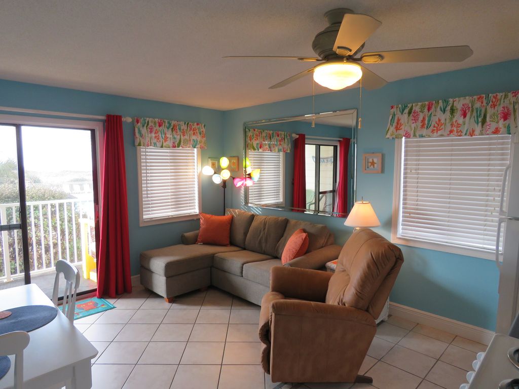 Beautiful Ocean Front fully furnished ground floor unit at the magnificent Gulf Shores Plantation Resort. The unit has 1 bedroom with queen bed, 1 bathroom, and a queen size sleeper sofa and rocker recliner in the living room. This condo is ocean front with a great view of the ocean and pool. It's on the 1st floor so you have the convenience of parking right outside the condo making unloading and loading your vehicle easy, also no waiting on the elevator. The grill is located right off the private balcony, along with a grassy area for the children to play. The unit is located in building 2. A dome indoor pool with a huge indoor hot tub, a steam room, game room and fitness room is only steps away. The unit has a 40 inch TV with DVD in the living room, 32 inch TV with DVD in the BR with a large selection of DVDs. The condo is equipped with wireless internet and cable, a fully equipped kitchen with microwave, stove, refrigerator with ice maker, coffee maker, cooking utensils, linens, six towels and six wash cloths, iron and ironing board, hair dryer. Housekeeping provides a starter kit, of one roll of toilet tissue, one roll of paper towels, one load of dish detergent, and a trash bag. It has ceiling fans in living and bed room. Theres a coin operated washer and dryer just across the hall from the unit. Do not let my low prices fool you, this is a beautiful well maintained up to date unit. You will not be disappointed. This Resort has 6 outdoor pools, one is heated. 1 indoor pool, several tennis courts, several lighted volley ball courts, lighted basketball courts, hot tubs, steam room, game room , beach store, horse shoes, Sassy Bass Restaurant and Starbucks is coming in 2017. More details