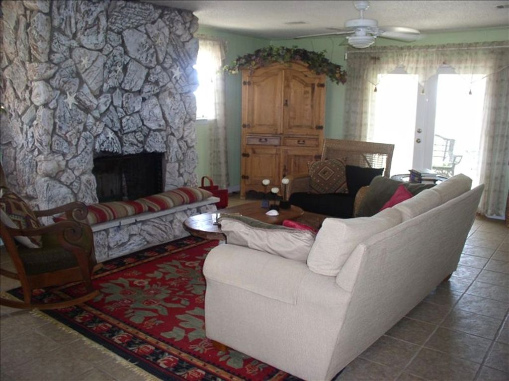 When we first walked into this unique cottage, we immediately fell in love with it and we know you will too! Not your run-of-the mill rental house, this cottage wraps its arms around you from the minute you pull in the driveway. It was been owner-occupied for years, and the care taken by the owner is apparent from the outside landscaping to the tastefully appointed furnishings inside.The cottage is located in Surfside Shores subdivision, 14 miles out Ft. Morgan peninsula. It sits on quiet street on a heavily-wooded lot on top of a dune one block off of the beach, with empty wooded lots on three sides, affording an unusual degree of privacy. Less than 500 feet to the beach (private wooded path through a beautiful beach dune), there is a partial Gulf view from the back deck and screened in porch and a better view from the upper deck. The upper deck (crow's nest) is a great place to enjoy your morning coffee or view a spectacular sunset. A secluded outside shower provides a perfect way to cool off after a stroll back from the beach. And wait until you see the inside! Tiled floors throughout, unique furniture and decorations, open floor plan, pleasing color schemes, the style is reminiscent of an old island plantation home. None of the typical condominium-style beach decor in this charmer. There is a master bedroom with a very comfortable queen bed and private bath, a second bedroom with two double beds, and a downstairs private bedroom/bath suite (separate entrance). The second upstairs full bath is directly off the living room. A full laundry room is attached to the covered parking area downstairs. The fully-equipped kitchen adjoins the living area for great entertaining.If you are looking for a something different in a private setting, look no further. We know that you will find this cottage as special as we do!Keywords: Beach House More details