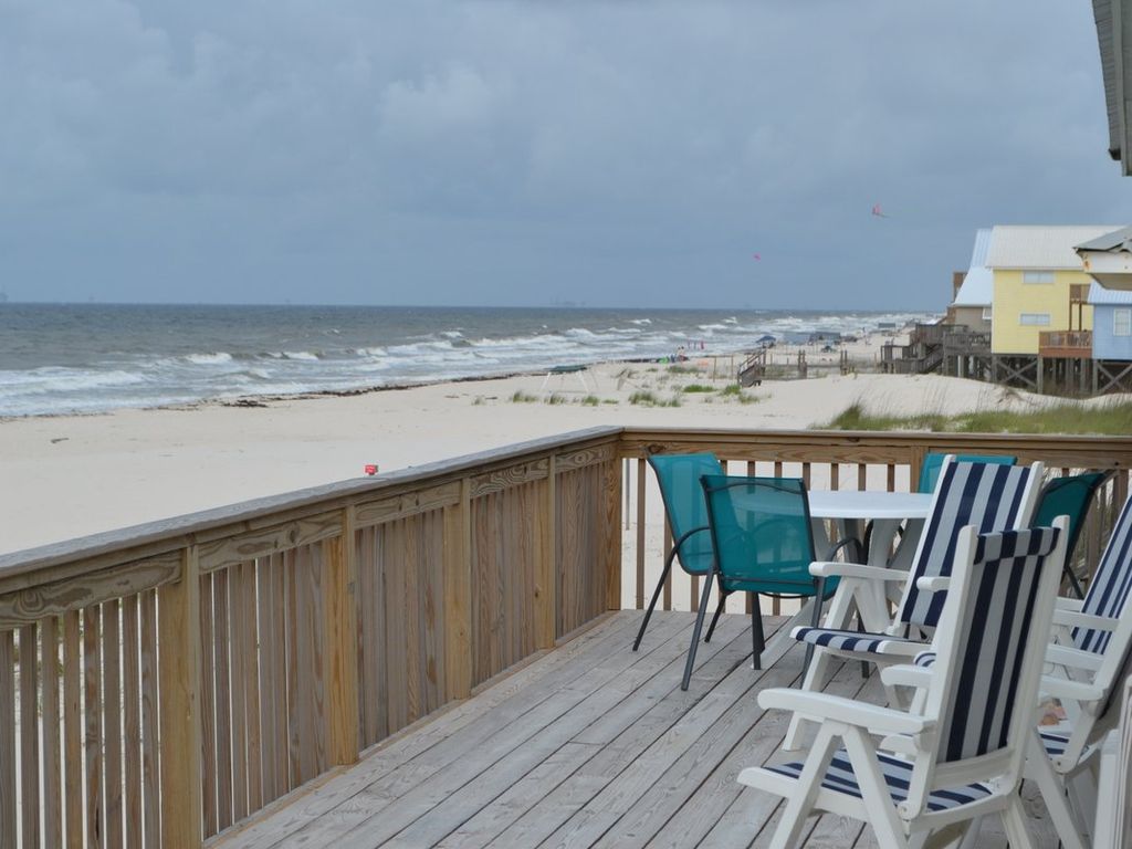 This completely remodeled cottage, is bright and airy with a view from every room. The home features four Bedrooms, and 2 1/2 Baths plus an outside enclosed shower and dressing area. The Living/Dining kitchen combo is great for large groups and there is an additional den. With two sleep sofas, the house will accommodate up to 12 people. The large Farmhouse dining table will seat nine and the kitchen island has 3 bar stools. There is also a dining table on the deck, for additional dining. The house has large deck on the street/bay side and a deck the length of the house on the beach side. Just a few steps and you are on the beautiful beaches of the Gulf of Mexico.