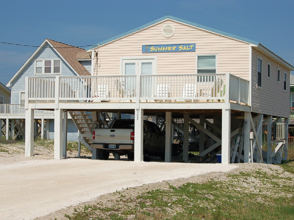 Incredible views of the Gulf from the large East and West Decks, as well as from all South windows of the house! 'Summer Salt' underwent a complete renovation with new furnishings n 2013, and feature larges decks on the West and East ends of the house and all new furnishings. The house has 2 bedrooms and 2 baths and a very large great room/kitchen. We provide satillite TV with televisions in all rooms and wireless internet access. Parking underhouse for 1 car with parking for 2 additional vehicles in the driveway. The house sleeps 7 people. The master bedroom has a private bath, patio door to the deck and a King size bed. The second bedroom has a twin bed and two bunk beds (sleeps 3). Additionally, the large great room has a queen sleeper sofa (sleeps 2). Summer Salt is a non-smoking, and pets are not allowed.