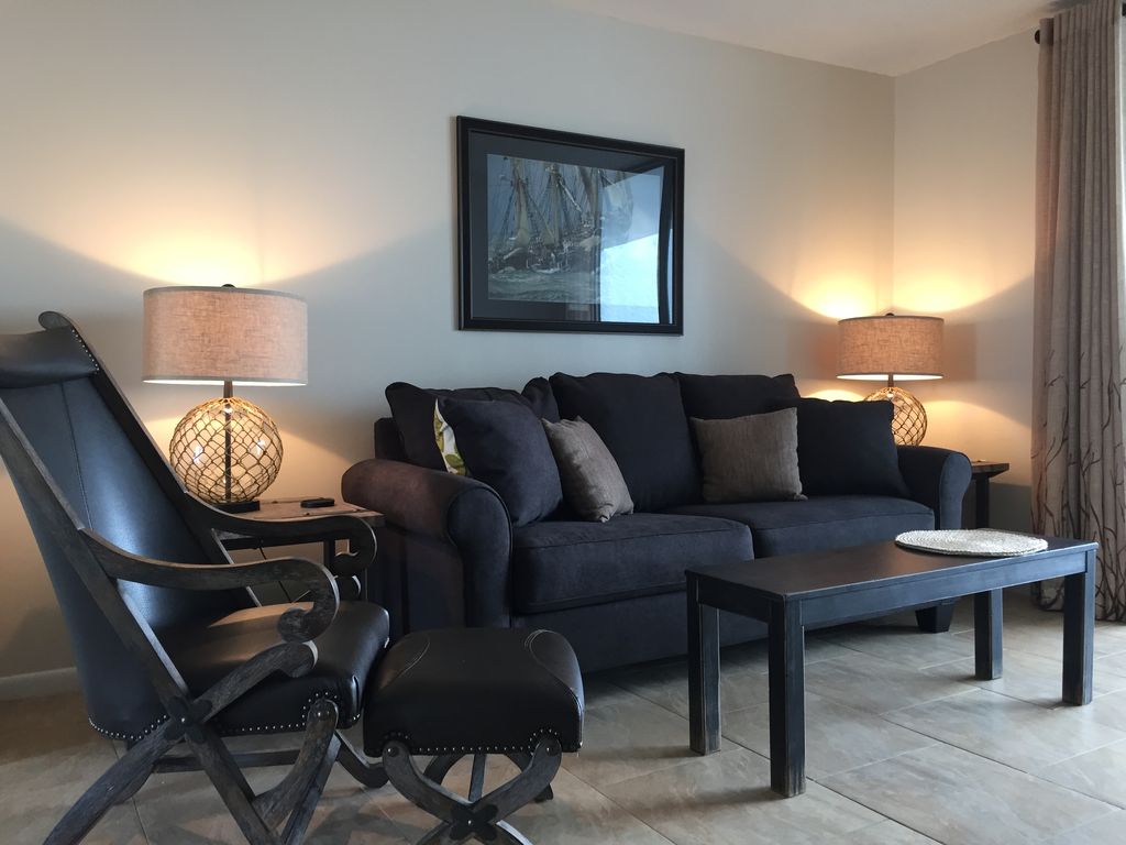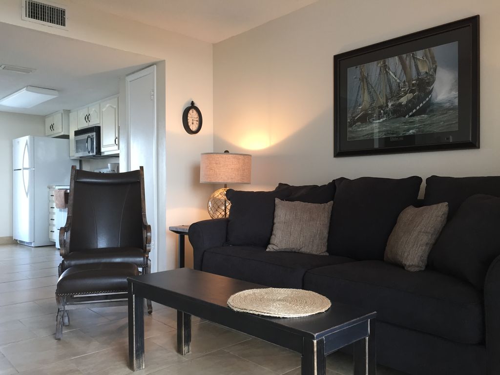 Tucked in the exclusive Gulf Shores Surf and Racket Club, this lovely resort property offers a multitude of amenities to help you get the most from your beach vacation. Lush, tropical landscaping, unobstructed beach views, as well as views of the lagoon and private piers, have long made this property a favorite for those seeking romantic and family-friendly getaways alike. The newly remodeled space boasts two bedrooms, a full bath, and sleeps up to 6 with a king and queen size bed, and sleeper sofa. Flat screen TV’s in living room and king bedroom, private internet access, a spacious, fully equipped kitchen and sophisticated décor make this the perfect space to relax and enjoy a worry-free vacation. Our guests have full access to 100’ of private gulf beach and covered gazebo just steps away! The grounds boast two lighted tennis courts, pool, children’s pool, hot tub, shuffleboard and more. Bring your boat, kayak and fishing poles - the property backs directly onto the Little Lagoon, graced with two piers, boat ramp, boat slips, charcoal grills and picnic tables – perfect for enjoying the day’s catch! The fun continues just a few miles away in downtown Gulf Shores where you’ll find a wide range of restaurants, shopping and entertainment. More details