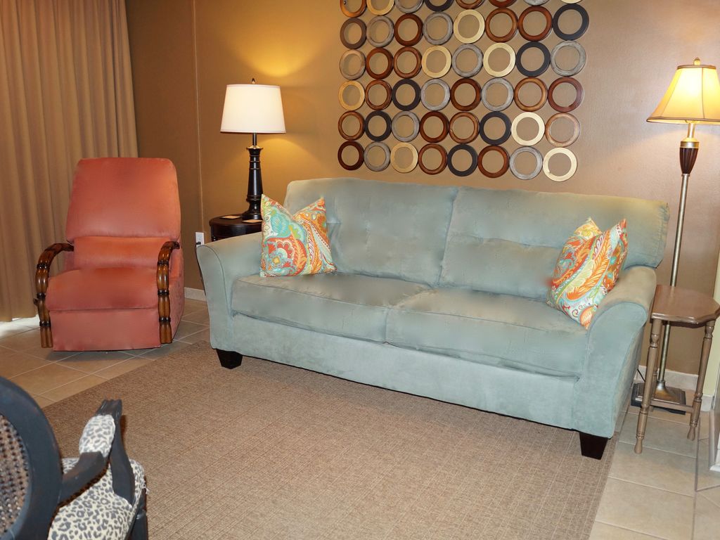Dates you need are gone? We have 6 condos here so let me know your dates and see if we have availability. Need to speak with me? Once you send an inquiry you can see my profile with phone numbers. Check out all our 5 Star reviews!A really beautiful condo with upgrades to pamper you on vacation. Our two-bedroom, one bath unit is located on the seventh floor and tastefully decorated in a tropical decor with upgraded tile in the bath, granite counters in both the bath and kitchen and tile floors throughout.. The kitchen is fully-equipped with everything you would ever need on vacation. The living room 40 in TV has HD with additional programming and a DVD player. Blackout curtains in every window great for naps and keeping the condo cool. The balcony, accessed from the living room or master bedroom, is perfect for relaxing and listening to the surf while enjoying the beautiful gulf views. Both bedrooms have doors for privacy, queen size beds, 32 in TVs with regular programming. There is also a washer and dryer for your convenience along with ceiling fans in each room for comfort. Need internet during your stay? We have Personal secured WI-FI in the unit that is not shared so its full strength. The complex has unsecured WIFI you can use at the pool or on the grounds. The unit is just under 700sf which we feel is perfect for a small family or two couples, sleeps a total of four (4). We also have a key less lock, so no keys to keep up with during your stay.The complex boasts beautiful lush palm trees and flowers that surround the large pool with a double sided rock waterfall. The children's pool is steps away along with a hot tub for the adults. Charcoal grills and picnic tables by the Lagoon are perfect for grilling out by sunset.The complex also has two lighted tennis courts and shuffleboard with the equipment available at no charge at the front office. There are fours elevators to get you where you need to be quickly. For the boaters, we have a boat ramp ($20 boat launch fee) and two private piers, one with boat slips to leave your boat in or fish off the piers. ACROSS THE STREET there is 100' of our private deeded beach with a covered Gazebo for our guests. All this and just a short distance from downtown Gulf Shores, you will find endless restaurants, shopping, and entertainment. DATES YOU NEEDED GONE AND YOU WANT TO STAY AT THIS WONDERFUL COMPLEX? WE HAVE ADDITIONAL UNITS IN THIS COMPLEX ALSO, ASK ABOUT AVAILABILITY. More details